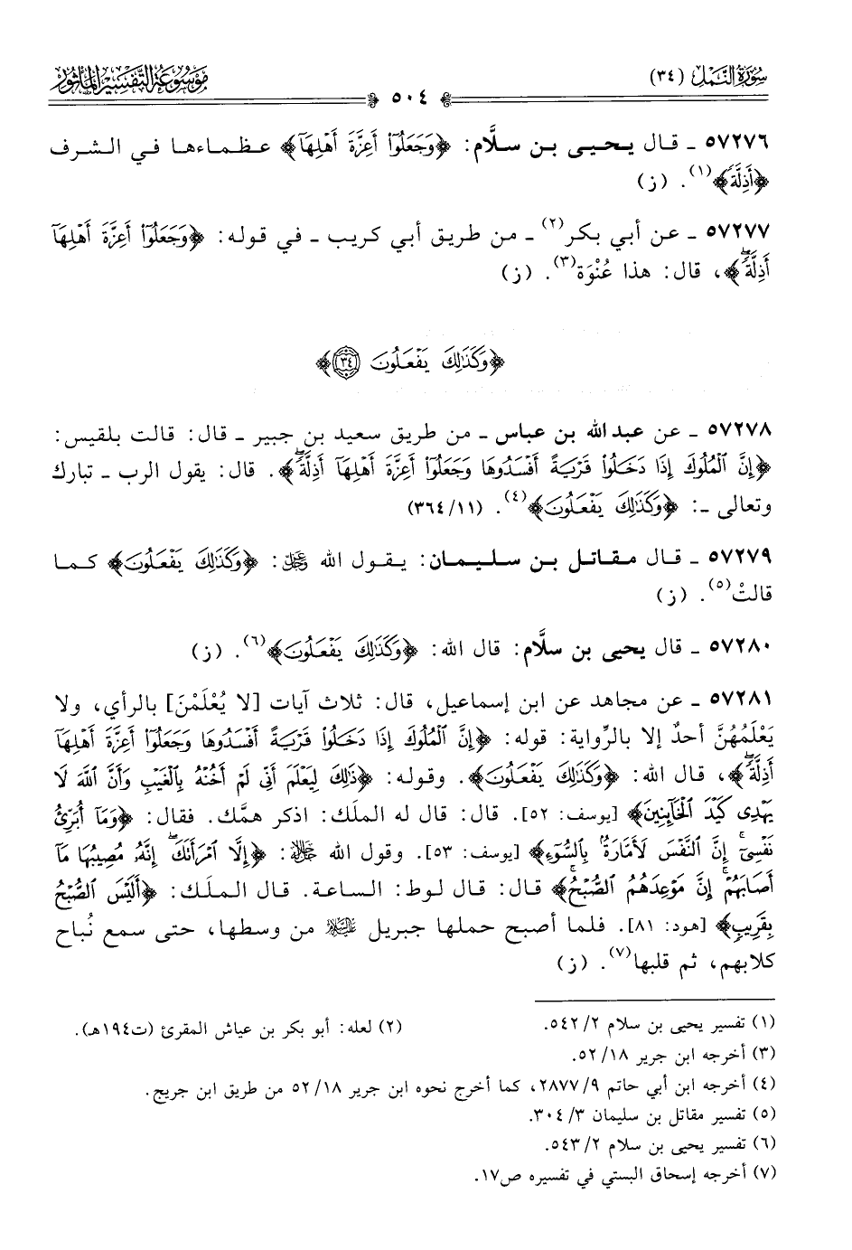 ٥٧٢٧٨ - عن عبد الله بن عباس -من طريق سعيد بن جبير- قال: قالت بلقيس: {إن الملوك إذا دخلوا قرية أفسدوها وجعلوا أعزة أهلها أذلة}. قال: يقول الرب -تبارك وتعالى-: {وكذلك يفعلون} (¬٤). (١١/ ٣٦٤)