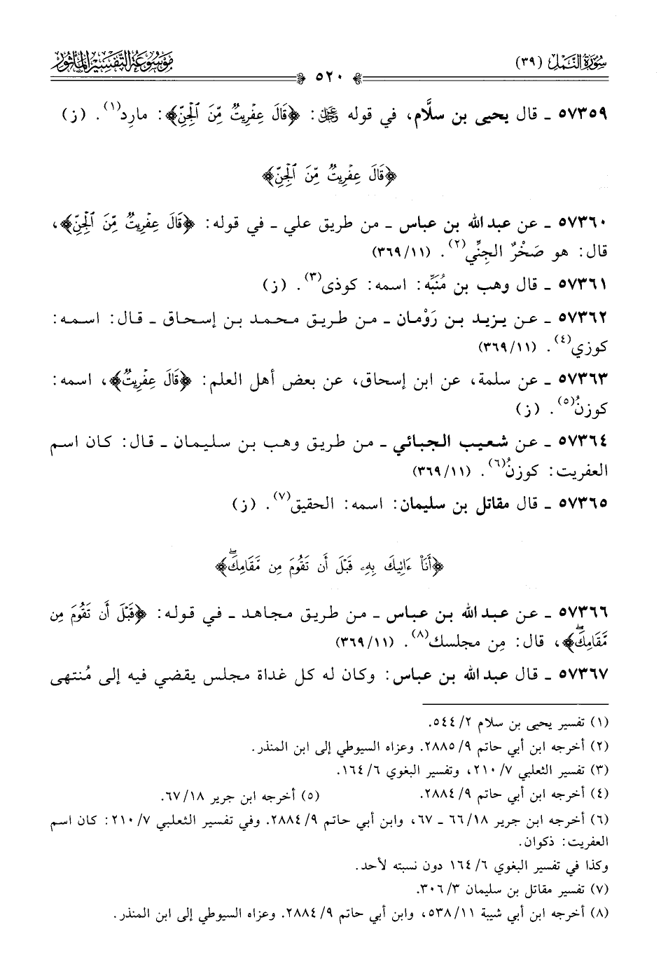 ٥٧٣٥٩ - قال يحيى بن سلّام، في قوله - عز وجل -: {قال عفريت من الجن}: مارِد (¬١). (ز)