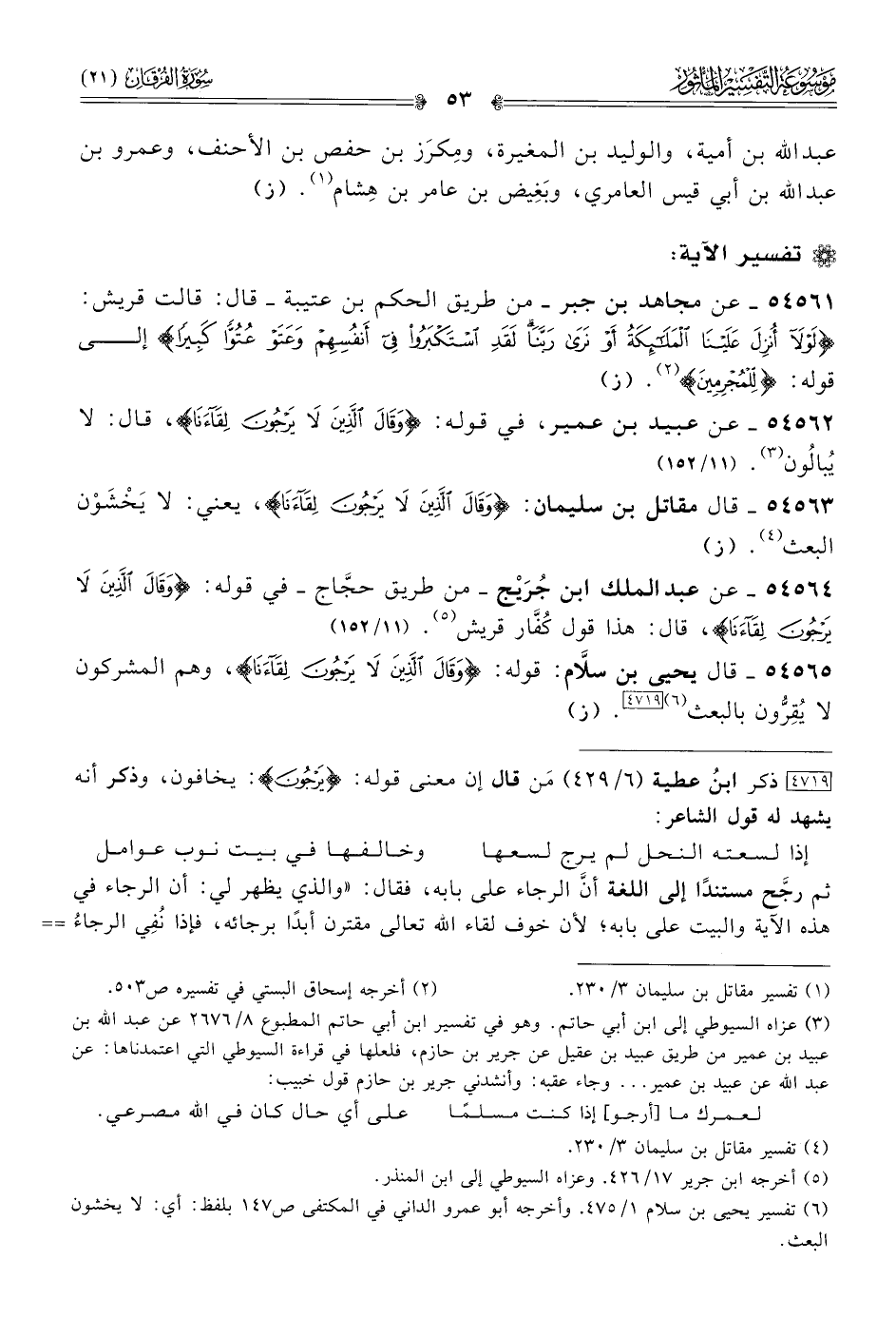 ٥٤٥٦٥ - قال يحيى بن سلّام: قوله: {وقال الذين لا يرجون لقاءنا}، وهم المشركون لا يُقِرُّون بالبعث (¬٦) [٤٧١٩]. (ز)