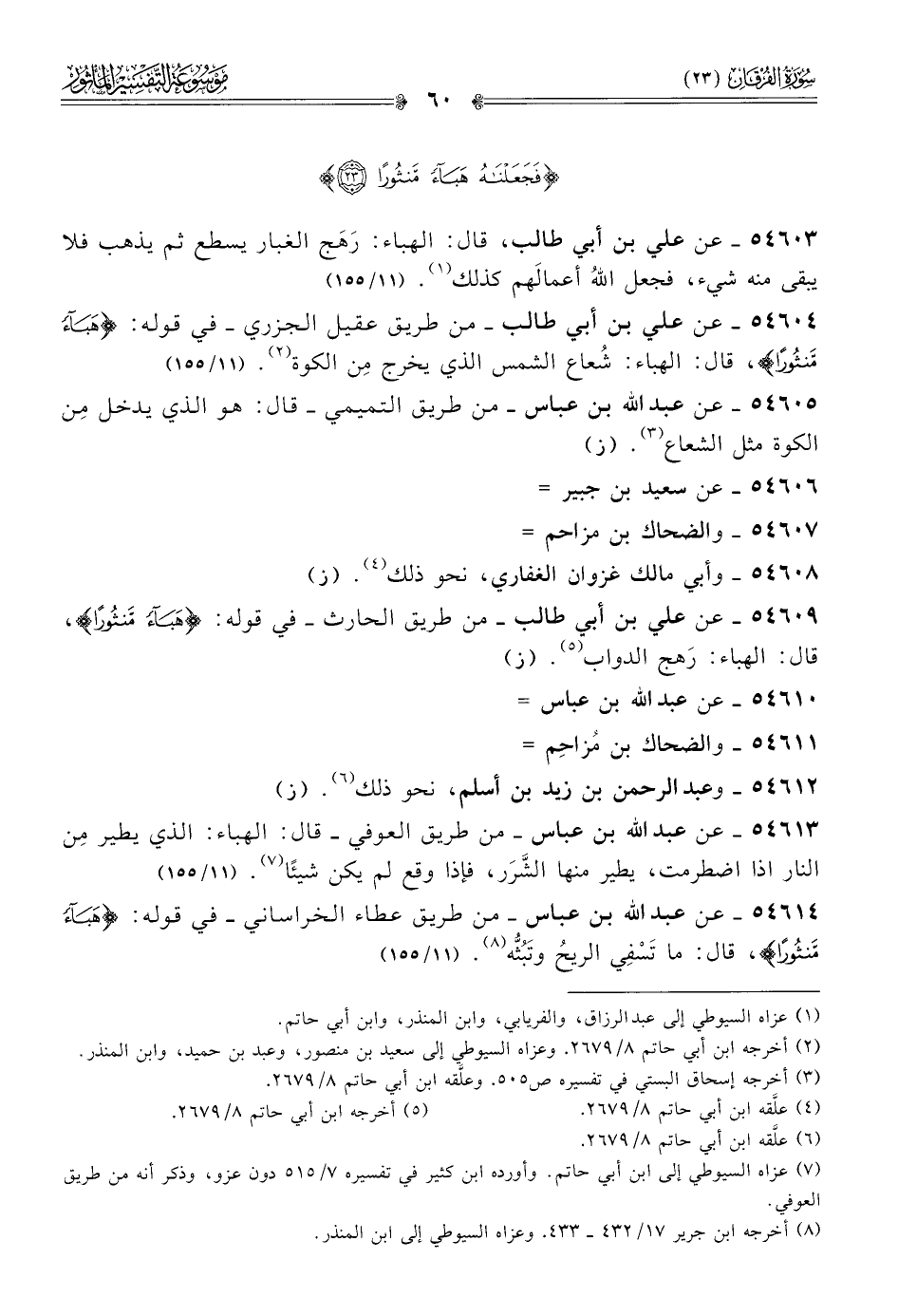 ٥٤٦٠٣ - عن علي بن أبي طالب، قال: الهباء: رَهَج الغبار يسطع ثم يذهب فلا يبقى منه شيء، فجعل اللهُ أعمالَهم كذلك (¬١). (١١/ ١٥٥)