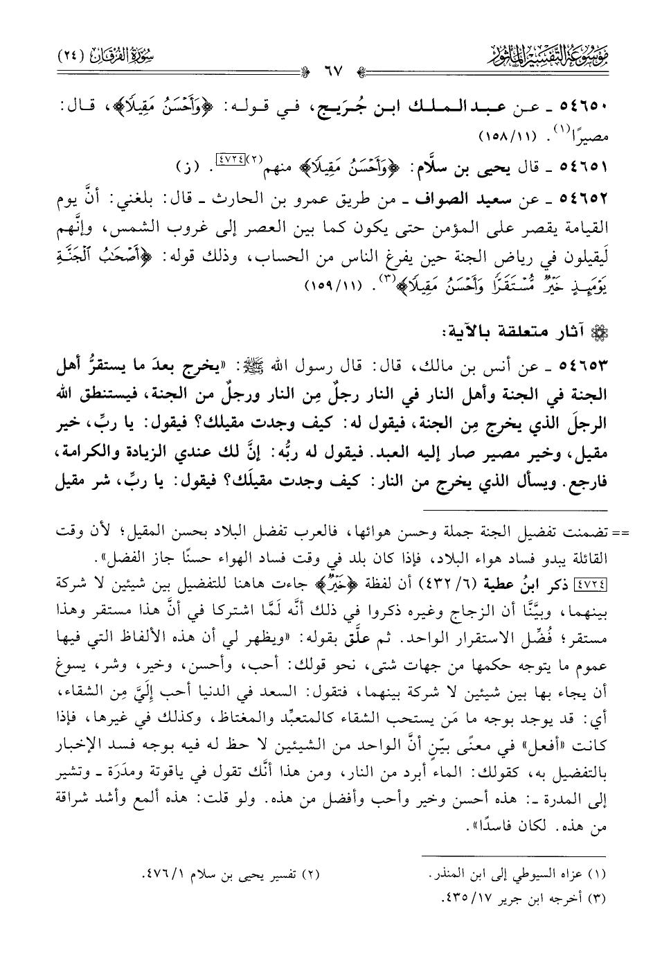 ٥٤٦٥١ - قال يحيى بن سلّام: {وأحسن مقيلا} منهم (¬٢) [٤٧٢٤]. (ز)