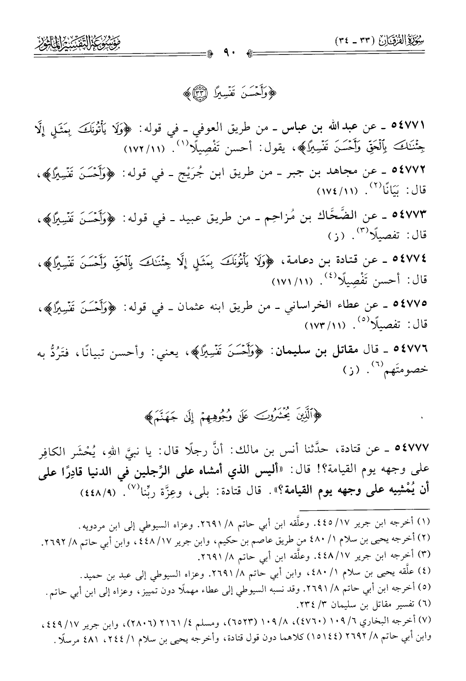 ٥٤٧٧٥ - عن عطاء الخراساني -من طريق ابنه عثمان- في قوله: {وأحسن تفسيرا}، قال: تفصيلًا (¬٥). (١١/ ١٧٣)