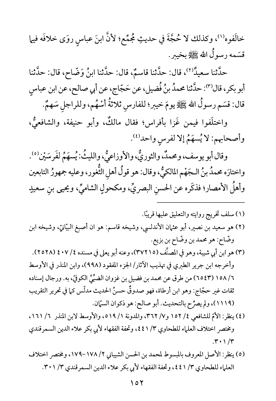 حدَّثنا سعيدٌ (¬٢)، قال: حدَّثنا قاسمٌ، قال: حدَّثنا ابنُ وَضّاح، قال: حدَّثنا أبو بكر، قال (¬٣): حدَّثنا محمدُ بنُ فُضيل، عن حَجّاج، عن أبي صالح، عن ابن عباسٍ قال: قسَم رسولُ الله -صلى الله عليه وسلم- يومَ خيبر؛ للفارسِ ثلاثةُ أسْهُم، وللراجلِ سَهمٌ.