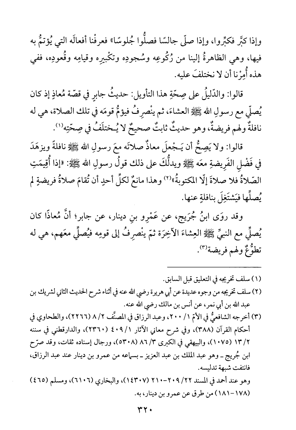 وقد روَى ابنُ جُرَيج، عن عَمْرِو بنِ دينار، عن جابر؛ أنَّ مُعاذًا كان يُصلِّي مع النبيِّ -صلى الله عليه وسلم- العِشاءَ الآخِرَة ثمّ ينْصرِفُ إلى قومِه فيُصلِّي معَهم، هي له تطوُّعٌ ولهم فريضة (¬٣).