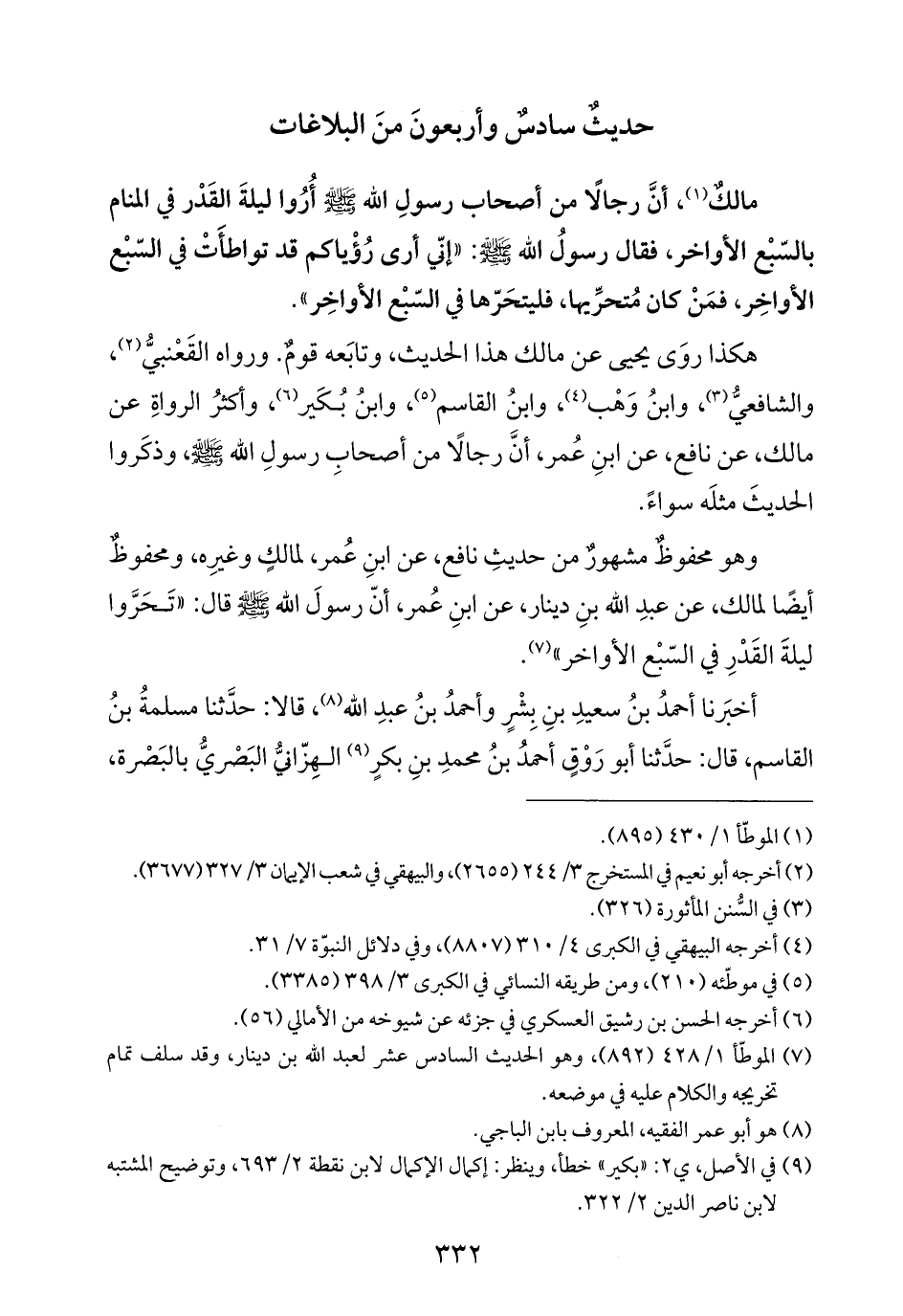 (¬٧) الموطّأ ١/ ٤٢٨ (٨٩٢)، وهو الحديث السادس عشر لعبد الله بن دينار، وقد سلف تمام تخريجه والكلام عليه في موضعه.