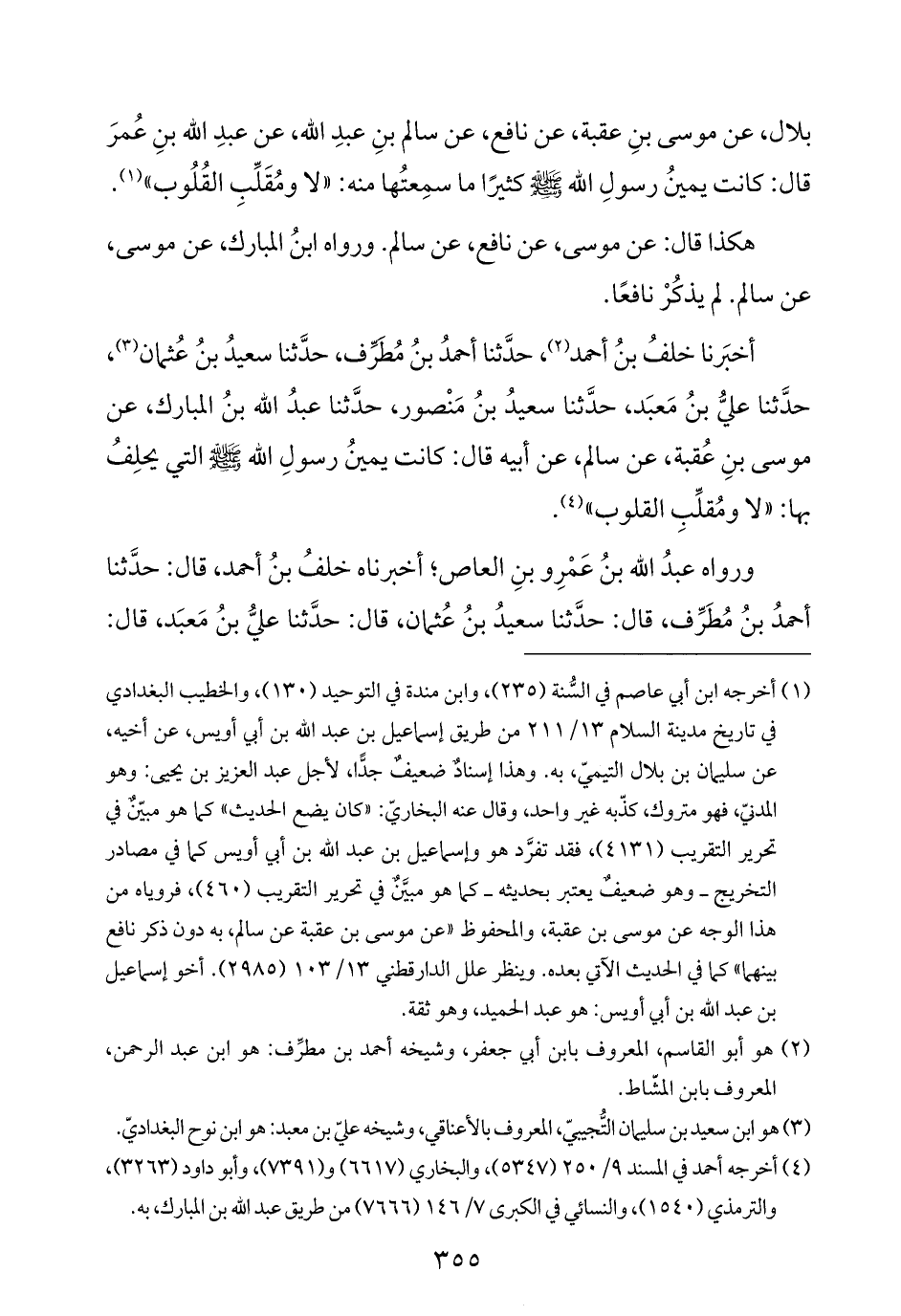 بلال، عن موسى بنِ عقبة، عن نافع، عن سالم بنِ عبدِ الله، عن عبدِ الله بنِ عُمرَ قال: كانت يمينُ رسولِ الله -صلى الله عليه وسلم- كثيرًا ما سمِعتُها منه: "لا ومُقَلِّبِ القُلُوب" (¬١).