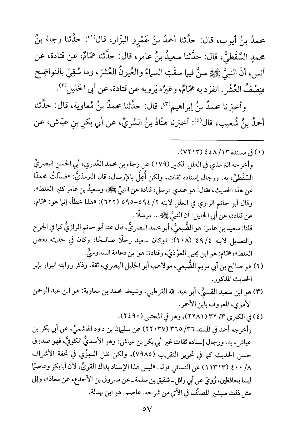 محمدُ بنُ أيوب، قال: حدَّثنا أحمدُ بنُ عَمْرٍو البزّار، قال (¬١): حدَّثنا رجاءُ بنُ محمدٍ السَّقَطيُّ، قال: حدَّثنا سعيدُ بنُ عامر، قال: حدَّثنا همّامٌ، عن قتادة، عن أنس، أنّ النبيَّ -صلى الله عليه وسلم- سنَّ فيما سقَتِ السماءُ والعُيونُ العُشْرَ، وما سُقِيَ بالنواضِح فنِصْفُ العُشْر. انفرَد به همّامٌ، وغيرُه يَرويه عن قتادة، عن أبي الخليل (¬٢).