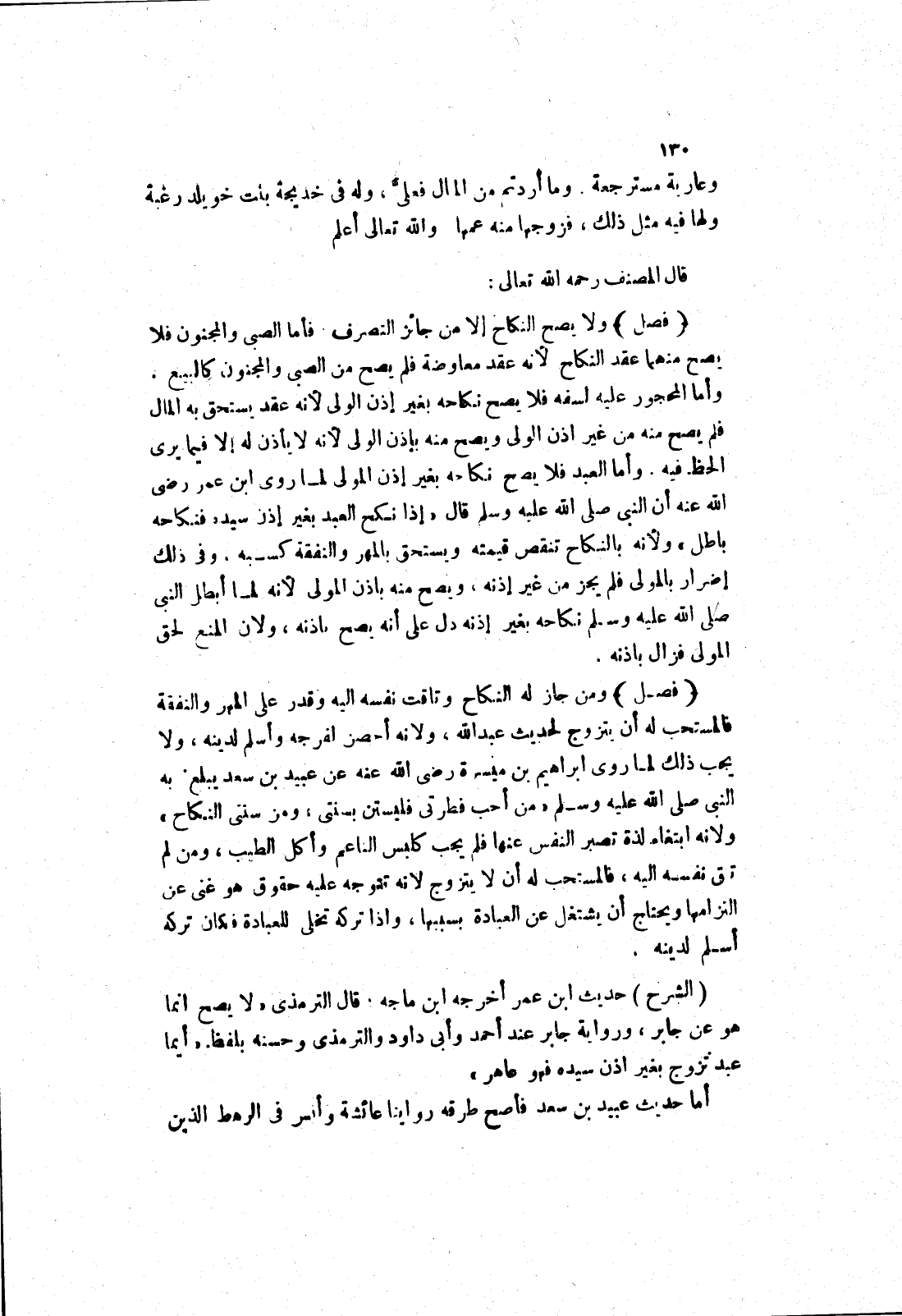 وأما العبد فلا يصح نكاحه بغير إذن المولى لما روى ابْنِ عُمَرُ رَضِيَ