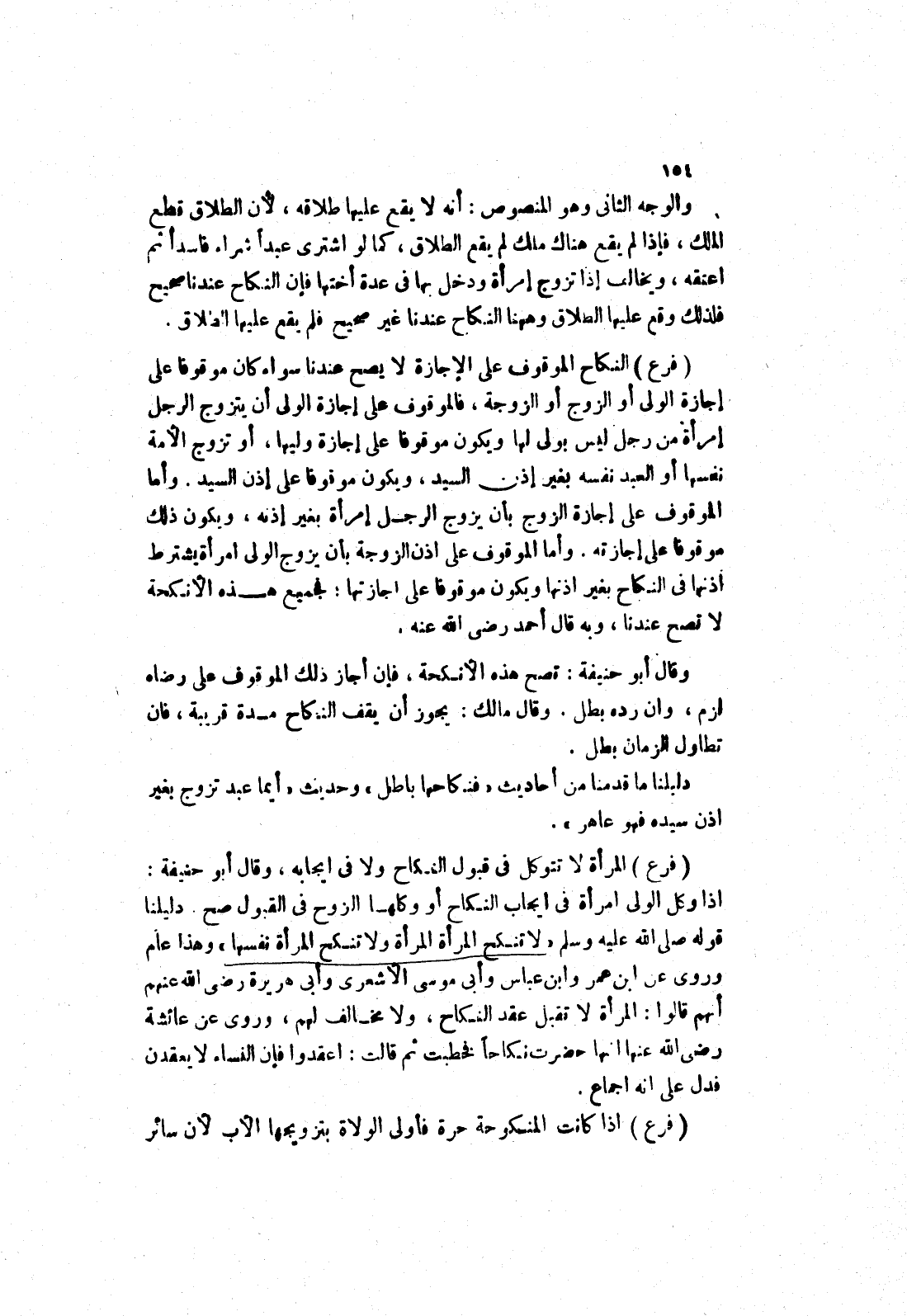وأما الموقوف على اذن الزوجة بأن يزوج الولى امرأة يشترط اذنها في النكاح بغير اذنها ويكون موقوفا على اجازتها: فجميع هذه الانكحة لا تصح عندنا، وبه قال أحمد رضى الله عنه.