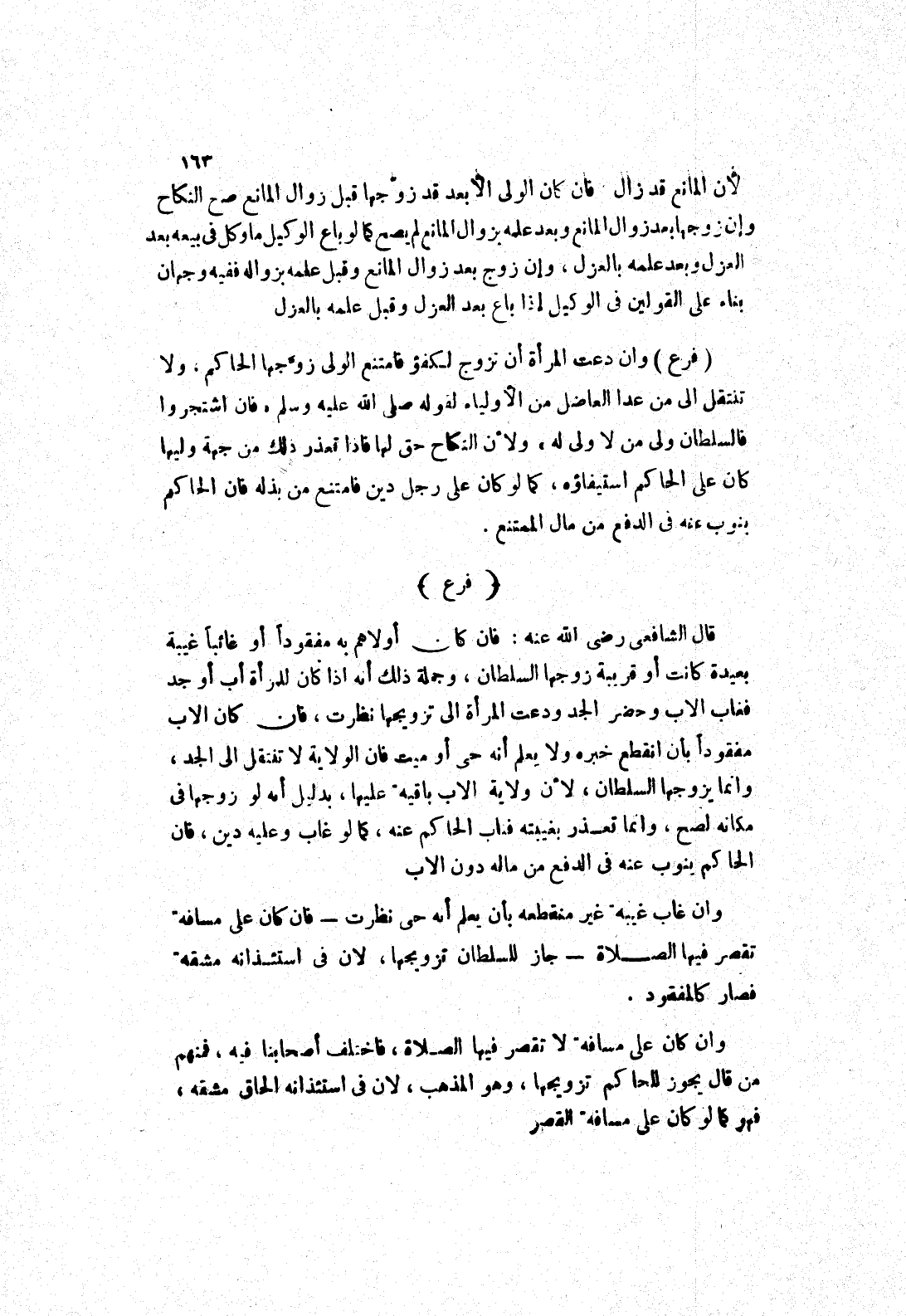 قَالَ الشَّافِعِيُّ رَضِيَ اللَّهُ عَنْهُ: فَإِنْ كَانَ أولاهم به مفقودا أو غائبا غيبة بعيدة كانت أو قريبة زوجها السلطان، وجملة ذلك أنه إذا كان للمرأة أب أو جد فغاب الاب وحضر الجد ودعت المرأة إلى تزويجها نظرت، فان كان الاب مفقودا بأن انقطع خبره ولا يعلم أنه حى أو ميت فان الولاية لا تنتقل إلى الجد، وانما يزوجها السلطان، لان ولاية الاب باقية عليها، بدليل أنه لو زوجها في مكانه لصح، وانما تعذر بغيبته فناب الحاكم عنه، كما لو غاب وعليه دين، فان الحاكم ينوب عنه في الدفع من ماله دون الاب وان غاب غيبه غير منقطعه بأن يعلم أنه حى نظرت فان كان على مسافة تقصر فيها الصلاة جاز للسلطان تزويجها، لان في استئذانه مشقة فصار كالمفقود.