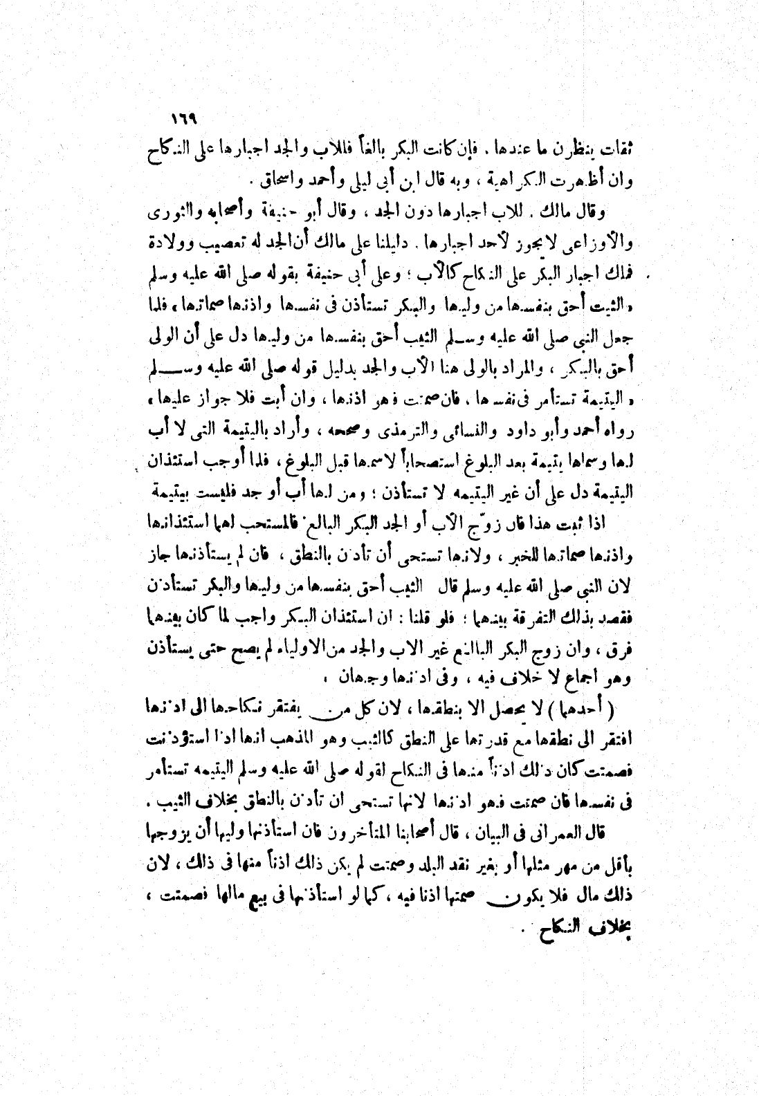 ثقات ينظرن ما عندها، فإن كانت البكر بالغا فللاب والجد اجبارها على النكاح وان أظهرت الكراهية، وبه قال ابن أبى ليلى وأحمد واسحاق.