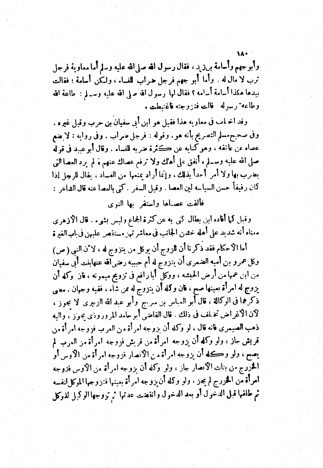 وأما أبو جهم فرجل ضراب للنساء، ولكن أسامة، فقالت بيدها هكذا أسامة أسامة؟ فقال لَهَا رَسُولَ اللَّهِ صَلَّى اللَّهُ عَلَيْهِ وَسَلَّمَ: طاعة الله وطاعة رسوله قالت فتزوجته فاغتبطت) وقد اختلف في معاوية هذا فقيل هو ابن أبى سفيان بن حرب وقيل غيره.