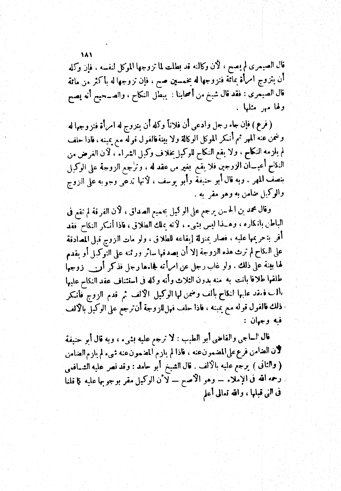 وقال محمد بن الحسن يرجع على الوكيل بجميع الصداق، لان الفرقة لم تقع في الباطن بانكاره، وهذا ليس بشئ، لانه يملك الطلاق، فإذا أنكر النكاح فقد أقر بتحريمها عليه، فصار بمنزلة إيقاعه للطلاق، ولو مات الزوج قبل المصادقة على النكاح لم ترث هذه الزوجة إلا أن يصدقها سائر ورثته على التوكيل أو يقدم لها بينة على ذلك.
