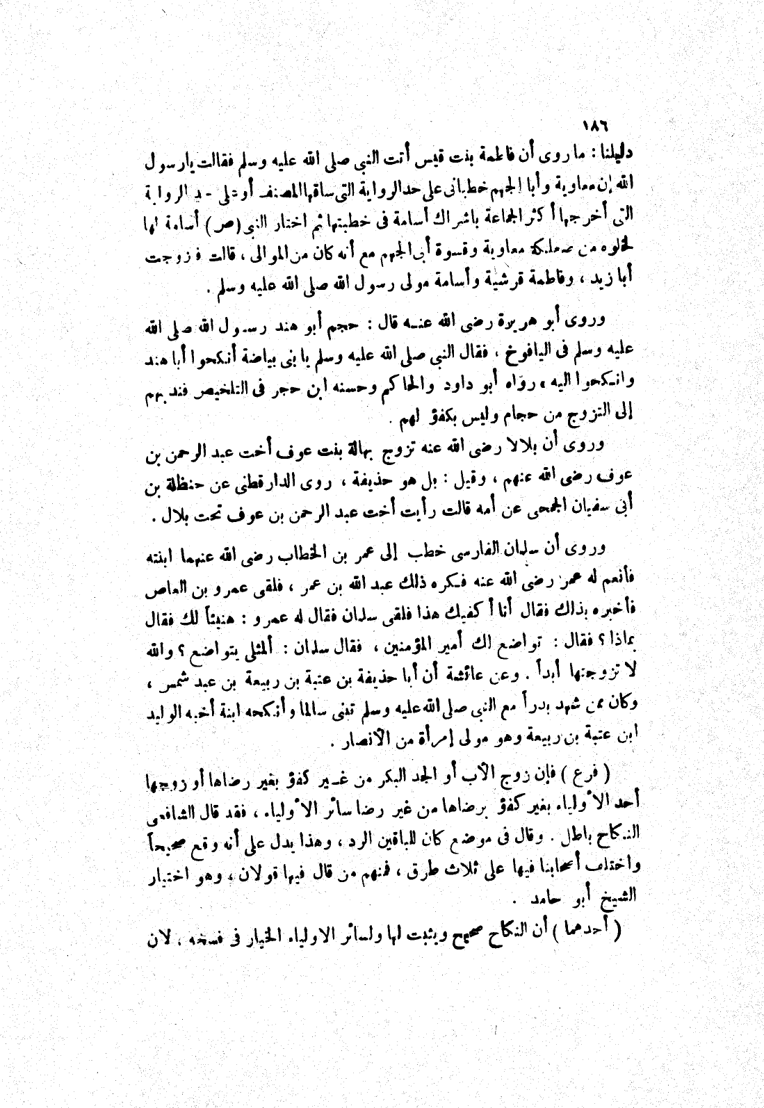 دليلنا: ما روى أن فاطمة بنت قيس أَتَتْ النَّبِيِّ صَلَّى اللَّهُ عَلَيْهِ وَسَلَّمَ فَقَالَتْ يَا رَسُولَ الله إن معاوية وأبا الجهم خطباني على حد الرواية التى ساقها المصنف أو على حد الرواية التى أخرجها أكثر الجماعة باشراك أسامة في خطبتها ثم اختار النبي صلى الله عليه وسلم أسامة لها لخلوه من صعلكة معاوية وقسوة أبى الجهم مع أنه كان من الموالى، قالت فتزوجت أبا زيد، وفاطمة قرشية وأسامة مَوْلَى رَسُولِ اللَّهِ صَلَّى اللَّهُ عَلَيْهِ وَسَلَّمَ.