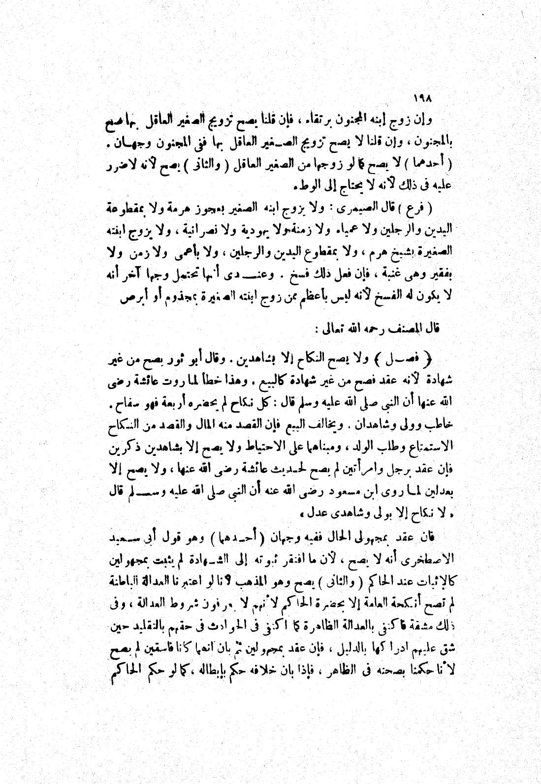 وإن زوج إبنه المجنون برتقاء، فإن قلنا يصح تزويج الصغير العاقل بها صح بالمجنون، وإن قلنا لا يصح تزويج الصغير العاقل بها ففى المجنون وجهان.