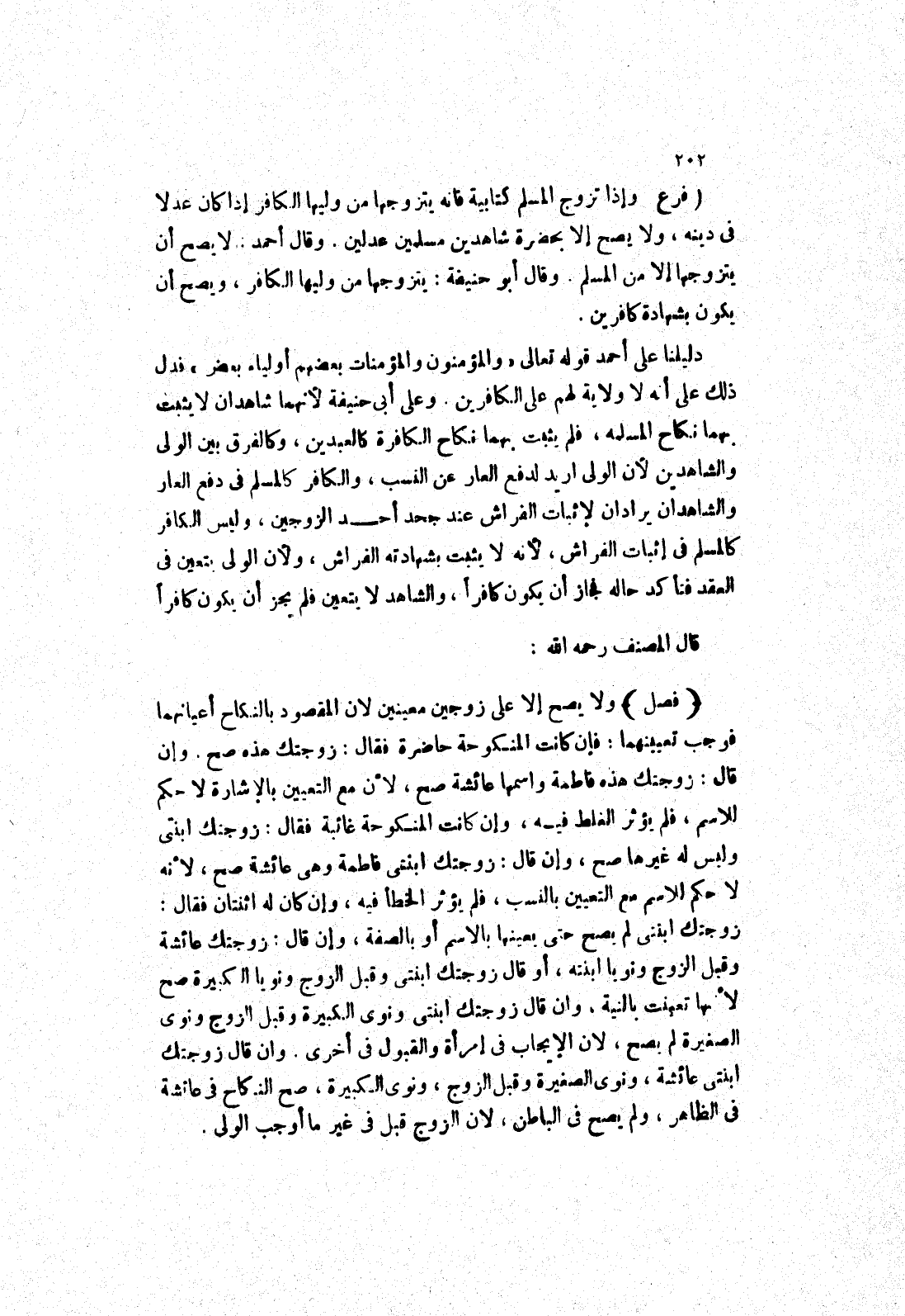 وعلى أبى حنيفة لانهما شاهدان لا يثبت بهما نكاح المسلمه، فلم يثبت بهما نكاح الكافرة كالعبدين، وكالفرق بين الولى والشاهدين لان الولى اريد لدفع العار عن النسب، والكافر كالمسلم في دفع العار