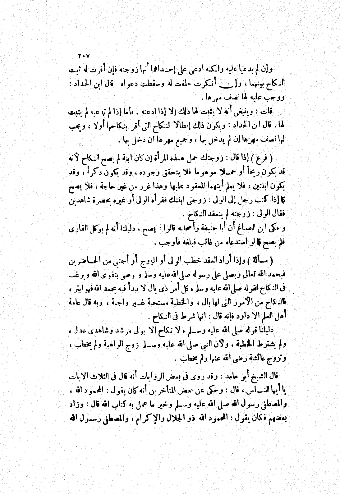 (مسألة) وإذا أراد العقد خطب الولى أو الزوج أو أجنبي من الحاضرين فيحمد الله تعالى ويصلى على رسوله صلى الله عليه وسلم ووصى بتقوى الله ويرغب في النكاح لقوله صَلَّى اللَّهُ عَلَيْهِ وَسَلَّمَ (كُلُّ أَمْرٍ ذِي بَالٍ لَا يُبْدَأُ فِيهِ بحمد الله فهو ابتر) فالنكاح من الامور التى لها بال، والخطبة مستحبة غير واجبة، وبه قال عامة أهل العلم الا داود فإنه قال: انها شرط في النكاح.