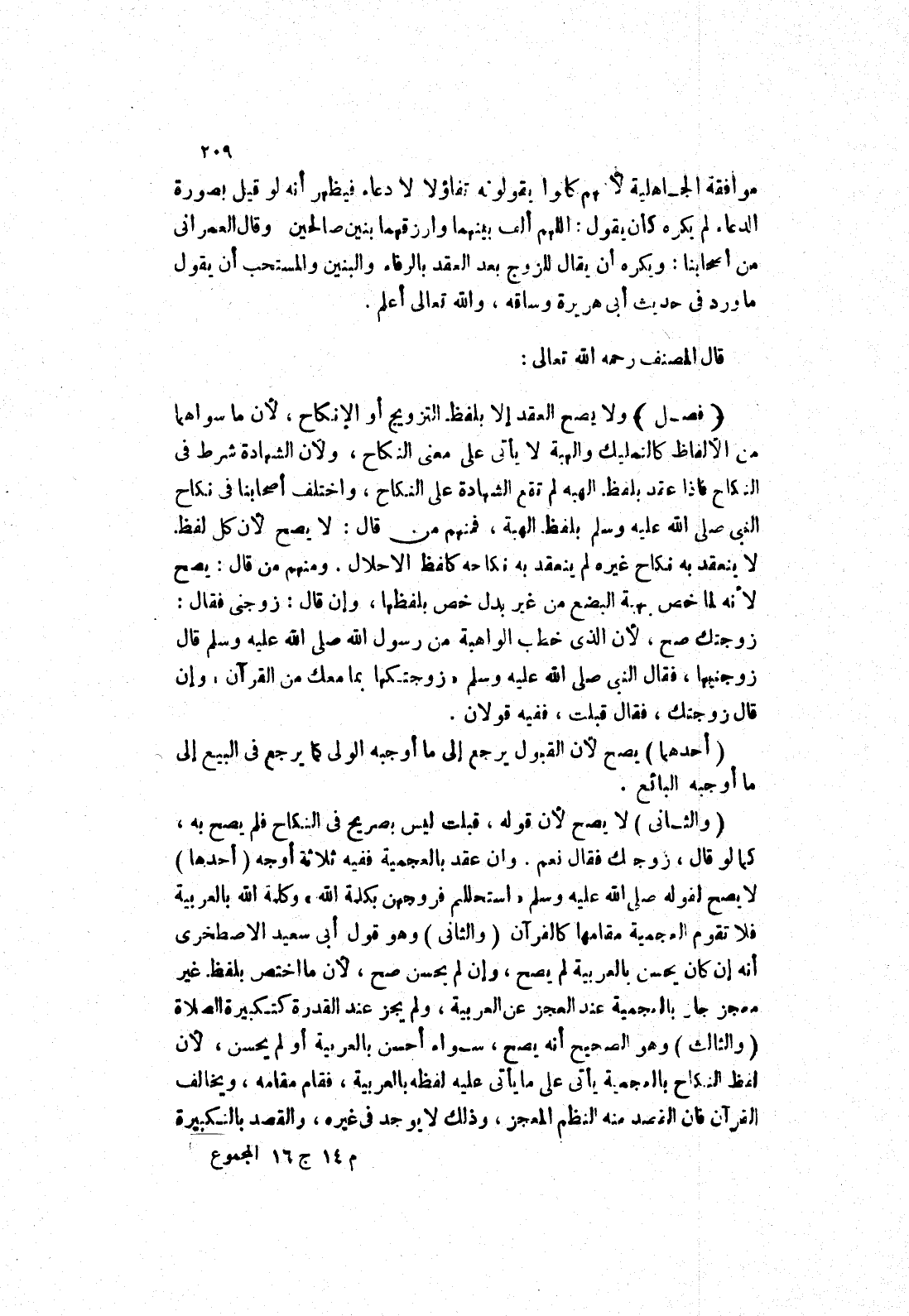 ومنهم من قال: يصح لانه لما خص بهبة البضع من غير بدل خص بلفظها، وإن قال: زوجنى فقال: زوجتك صح، لان الذى خطب الواهبة مِنْ رَسُولِ اللَّهِ صَلَّى اللَّهُ عَلَيْهِ وَسَلَّمَ قَالَ زوجنيها فقال النبي صلى الله عليه وسلم (زوجتكها بما معك من القرآن، وإن قال زوجتك، فقال قبلت، ففيه قولان.