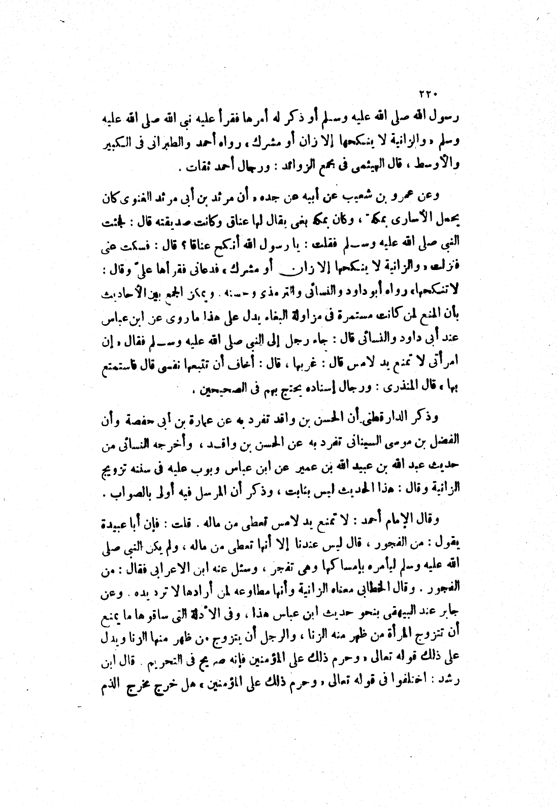 رَسُولِ اللَّهِ صَلَّى اللَّهُ عَلَيْهِ وَسَلَّمَ أَوْ ذكر له أمرها فقرأ عليه نبى الله صلى الله عليه وسلم (والزانية لا ينكحها إلا زان أو مشرك) رواه أحمد والطبراني في الكبير والاوسط، قال الهيثمى في مجمع الزوائد: ورجال أحمد ثقات.