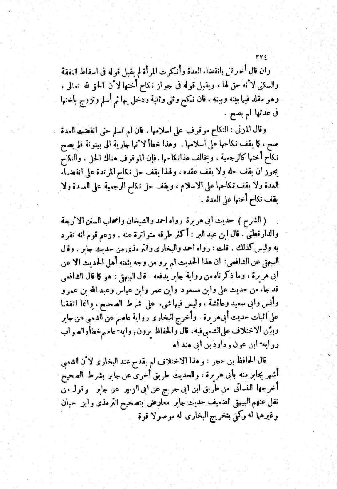 قال الحافظ بن حجر: وهذا الاختلاف لم يقدح عند البخاري لان الشعبى أشهر بجابر منه بأبى هريرة، وللحديث طريق أخرى عن جابر بشرط الصحيح أخرجها النسائي من طريق ابن ابى جريج عن ابى الزبير عن جابر وقول من نقل عنهم البيهقى تضعيف حديث جابر معارض بتصحيح الترمذي وابن حبان وغيرهما له وكفى بتخريج البخاري له موصولا قوة