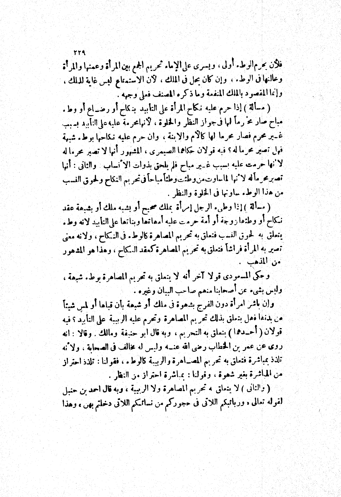 وحكى المسعودي قولا آخر أنه لا يتعلق به تحريم المصاهرة بوطئ شبهة، وليس بشئ عن أصحابنا منهم صاحب البيان وغيره.
