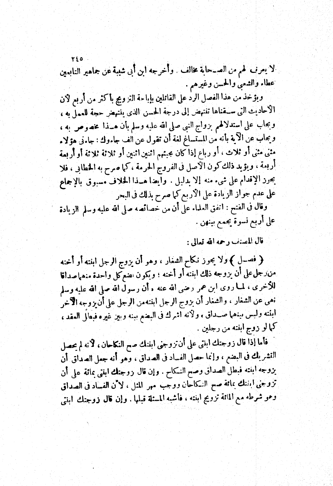 ويؤخذ من هذا الفصل الرد على القائلين بإباحة التزويج بأكثر من أربع لان الاحاديث التى سقناها تنتهض إلى درجة الحسن الذى ينتهض حجة للعمل به، ويجاب على استدلالهم بزواج النبي صلى الله عليه وسلم بأن هذا مخصوص به، ويجاب عن الآية بأنه من المستساغ لغة أن تقول عن الف جاءوك: جاءني هؤلاء مثنى مثنى أو ثلاث، أو رباع إذا كان مجيئهم اثنين اثنين أو ثلاثة ثلاثه أو أربعة أربعة، ويؤيد ذلك كون الاصل في الفروج الحرمة، كما صرح به الخطابى، فلا يجوز الاقدام على شئ منه إلا بدليل.