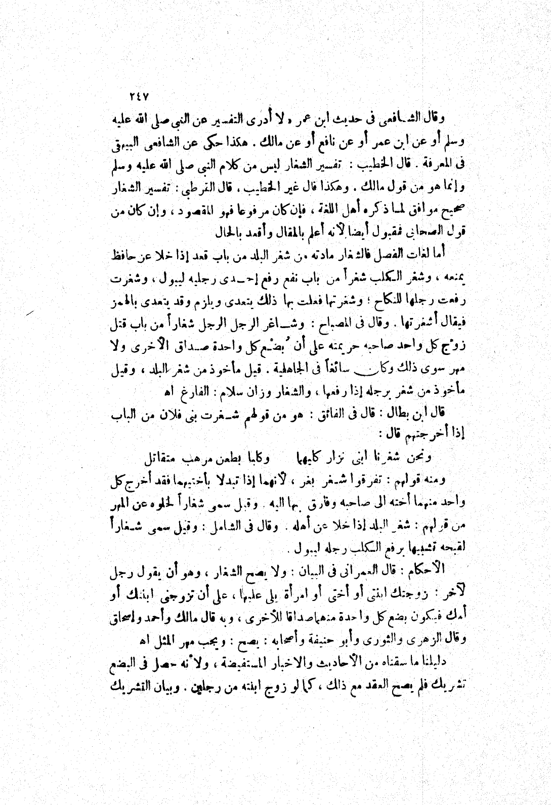 قال الخطيب: تفسير الشغار لَيْسَ مِنْ كَلَامِ النَّبِيِّ صَلَّى اللَّهُ عَلَيْهِ وَسَلَّمَ وإنما هو من قول مالك.