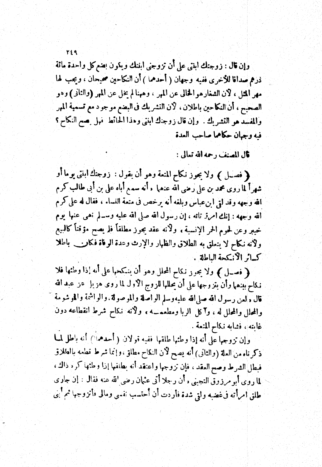 ولا يجوز نكاح المحلل وهو أن ينكحها على أنه إذا وطئها فلا نكاح بينهما وأن يتزوجها على أن يحللها للزوج الاول لما روى هزيل عن عبد الله قَالَ (لَعَنَ رَسُولُ اللَّهِ صَلَّى اللَّهُ عَلَيْهِ وسلم الواصلة والموصولة.