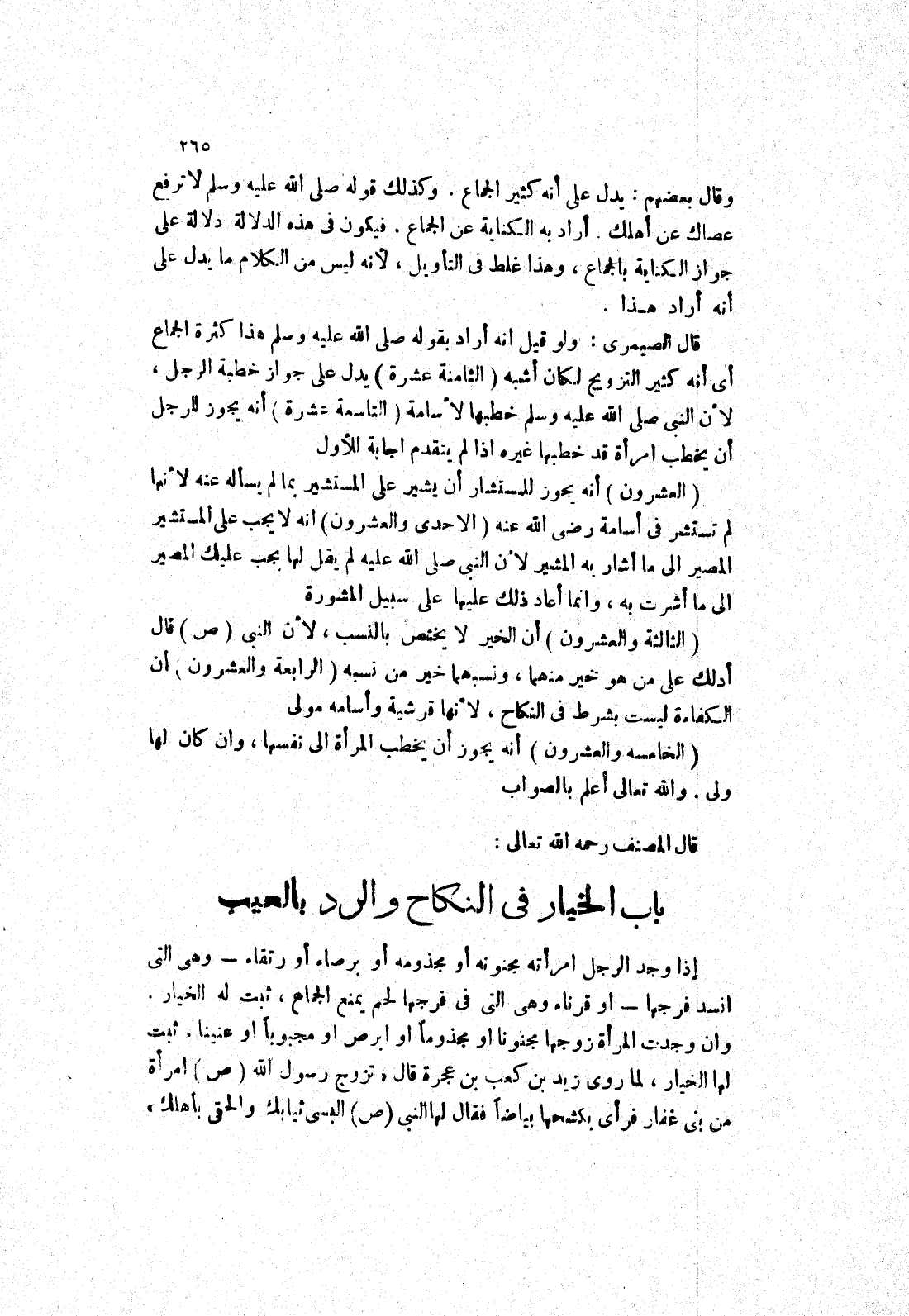 إذا وجد الرجل امرأته مجنونه أو مجذومه أو برصاء أو رتقاء وهى التى انسد فرجها أو قرناء وهى التى في فرجها لحم يمنع الجماع، ثبت له الخيار.