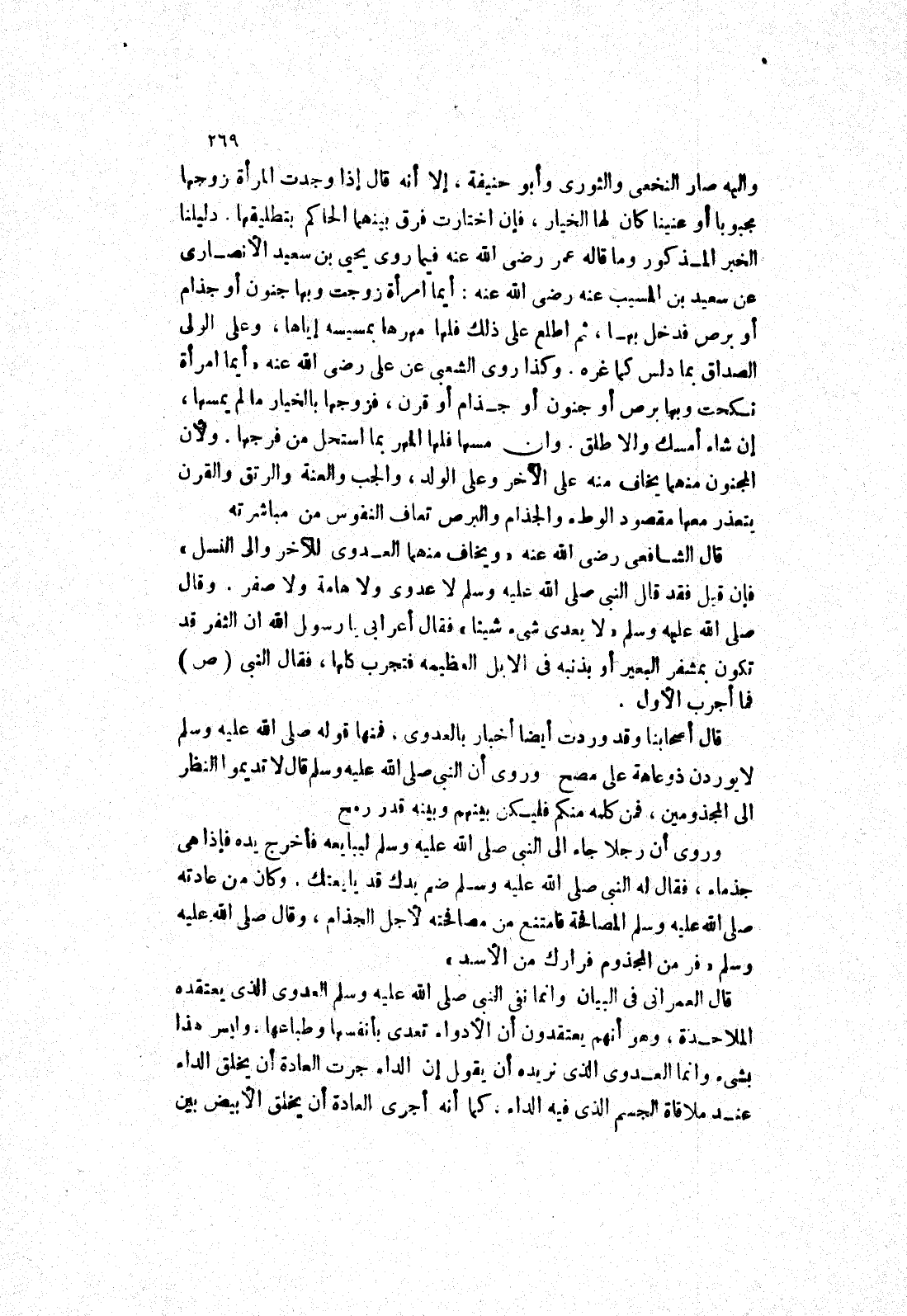 دليلنا الخبر المذكور وما قاله عمر رضى الله عنه فيما روى يحيى بن سعيد الانصاري عن سعيد بن المسيب عنه رضى الله عنه: أيما امرأة زوجت وبها جنون أو جذام