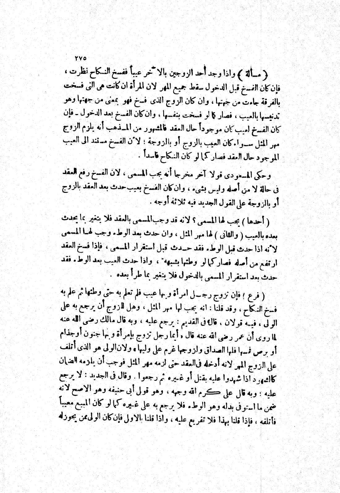 وحكى المسعودي قولا آخر مخرجا أنه يجب المسمى، لان الفسخ رفع العقد في حالة لا من أصله وليس بشئ، وان كان الفسخ بعيب حدث بعد العقد بالزوج أو بالزوجة على القول الجديد فيه ثلاثة أوجه.