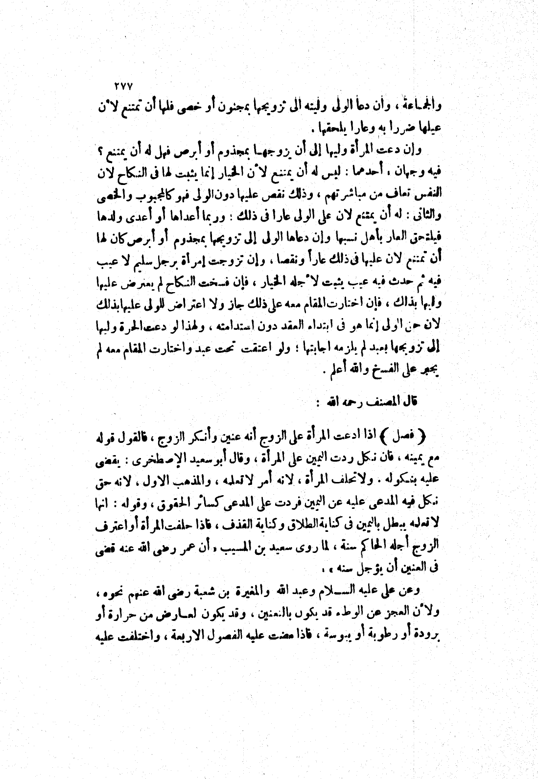 ولا تحلف المرأة، لانه أمر لا تعلمه، والمذهب الاول، لانه حق نكل فيه المدعى عليه عن اليمين فردت على المدعى كسائر الحقوق، وقوله: انها لا تعلمه يبطل باليمين في كناية الطلاق وكناية القذف، فإذا حلفت الرأة أو اعترف الزوج أجله الحاكم سنة، لما روى سعيد بن المسيب (أن عمر رضى الله عنه قضى في العنين أن يؤجل سنه (وعن علي عليه السلام وعبد الله والمغيرة بن شعبة رضى الله عنهم نحوه، ولان العجز عن الوطئ قد يكون بالتعنين، وقد يكون لعارض من حرارة أو برودة أو رطوبة أويبوسة، فإذا مضت عليه الفصول الاربعة، واختلفت عليه