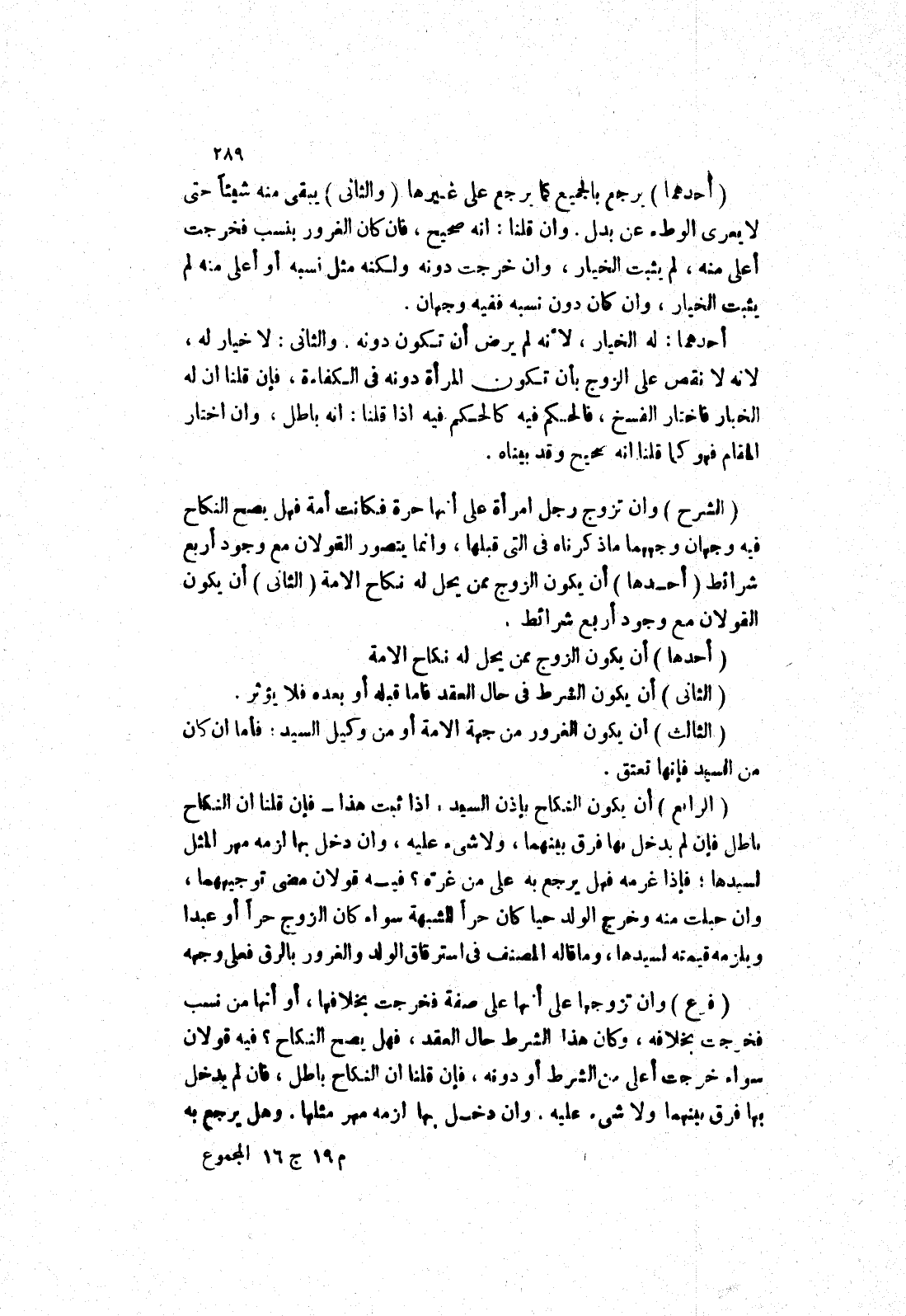 (أحدها) أن يكون الزوج ممن يحل له نكاح الامة (الثاني) أن يكون الشرط في حال العقد فاما قبله أو بعده فلا يؤثر.