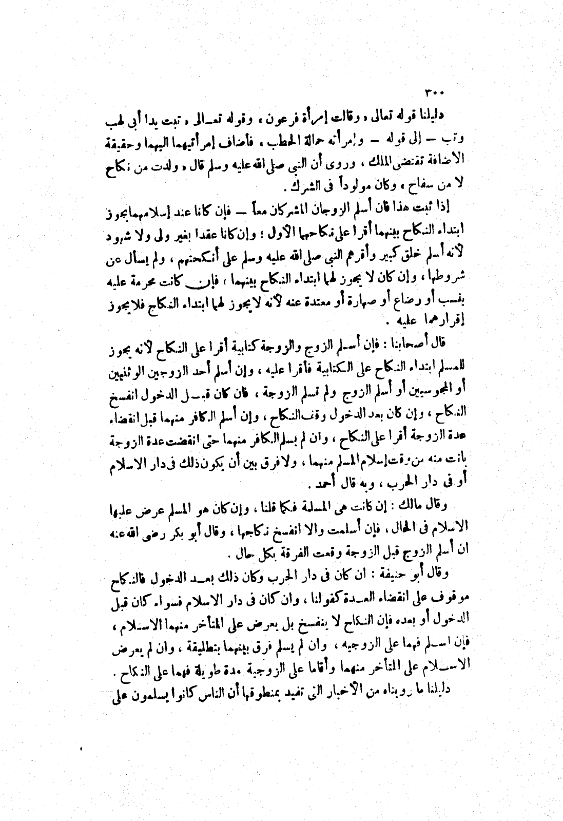 قال أصحابنا: فإن أسلم الزوج والزوجة كتابية أقرا على النكاح لانه يجوز للمسلم ابتداء النكاح على الكتابية فأقرا عليه، وإن أسلم أحد الزوجين الوثنيين أو المجوسيين أو أسلم الزوج ولم تسلم الزوجة، فان كان قبل الدخول انفسخ النكاح، وإن كان بعد الدخول وقف النكاح، وإن أسلم الكافر منهما قبل انقضاء عدة الزوجة أقرا على النكاح، وأن لم يسلم الكافر منهما حتى انقضت عدة الزوجة بانت منه من وقت إسلام المسلم منهما، ولا فرق بين أن يكون ذلك في دار الاسلام أو في دار الحرب، وبه قال أحمد.