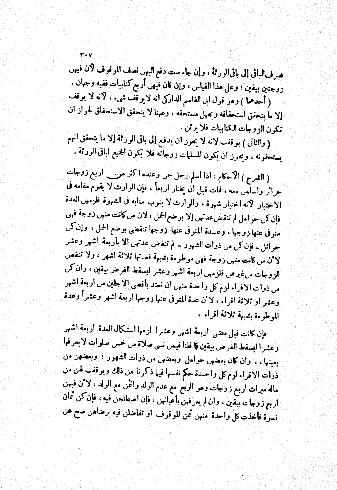 فإن كانت قبل مضى اربعة اشهر وعشرا لزمها استكمال العدة اربعة اشهر وعشرا ليسقط الفرض بيقين كما قلنا فيمن نسى صلاة من خمس صلوات لا يعرفها بعينها،، وان كان بعضهن حوامل وبعضهن من ذوات الشهور، وبعضهن من ذوات الاقراء لزم كل واحدة حكم نفسها فيما ذكرنا من ذلك ويوقف لهن من ماله ميراث اربع زوجات وهو الربع مع عدم الولد والثمن مع الولد، لان فيهن أربع زوجات بيقين، وان لم يعرفهن بأعيانهن، فإن اصطلحن فيه، فإن كن ثمان نسوة فأخذت كل واحدة منهن ثمن الموقوف أو تفاضلن فيه برضاهن صح عن