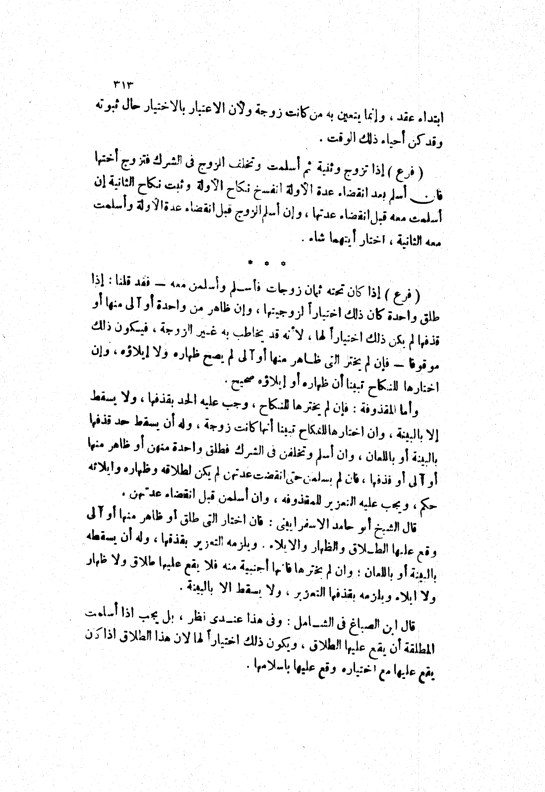 قال ابن الصباغ في الشامل: وفى هذا عندي نظر، بل يجب إذا أسلمت المطلقة أن يقع عليها الطلاق، ويكون ذلك اختيارا لها لان هذا الطلاق إذا كان يقع عليها مع اختياره وقع عليها باسلامها.
