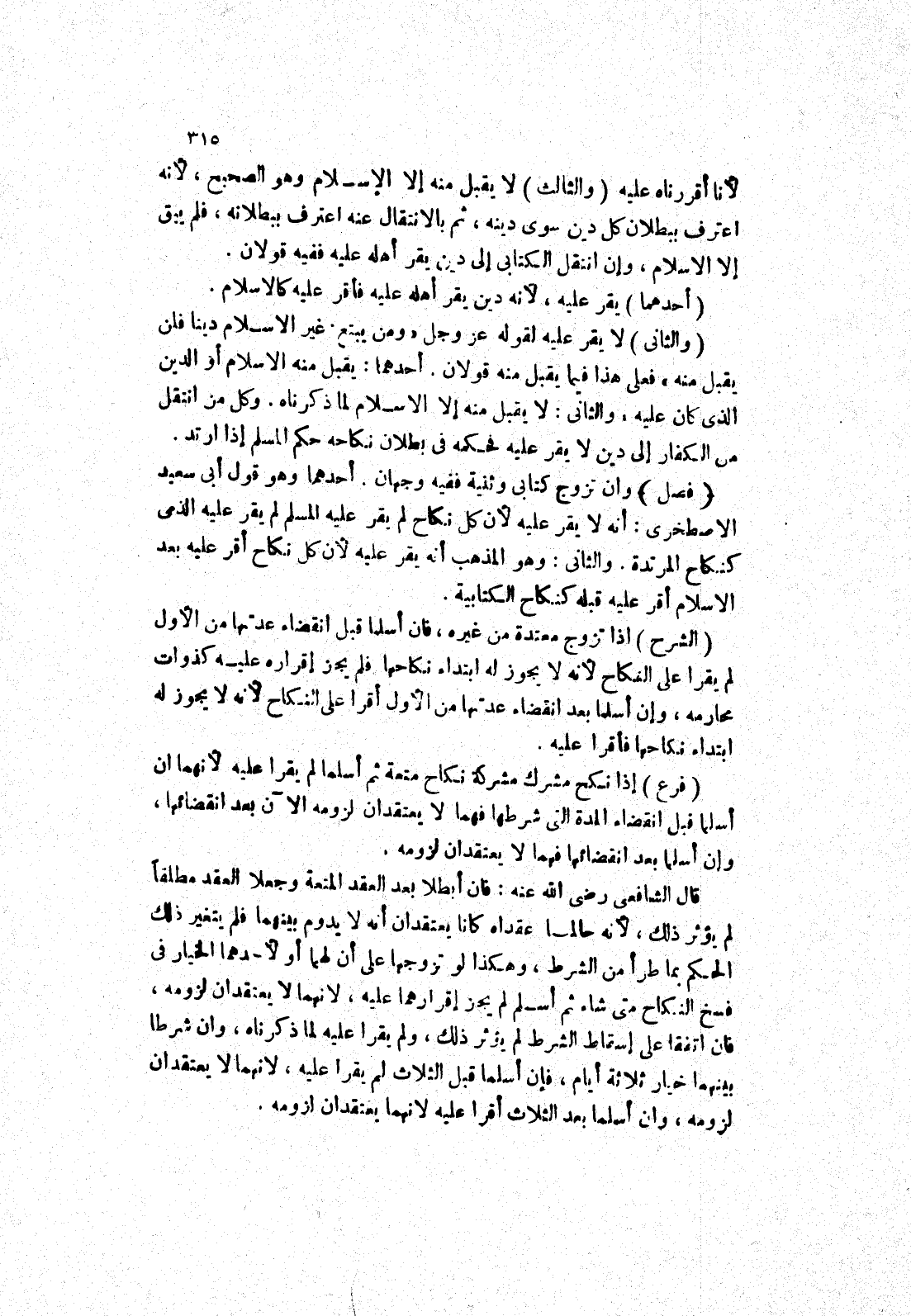 لانا أقررناه عليه (والثالث) لا يقبل منه إلا الاسلام وهو الصحيح، لانه اعترف ببطلان كل دين سوى دينه، ثم بالانتقال عنه اعترف ببطلانه، فلم يبق إلا الاسلام، وإن انتقل الكتابى إلى دين يقر أهله عليه ففيه قولان.