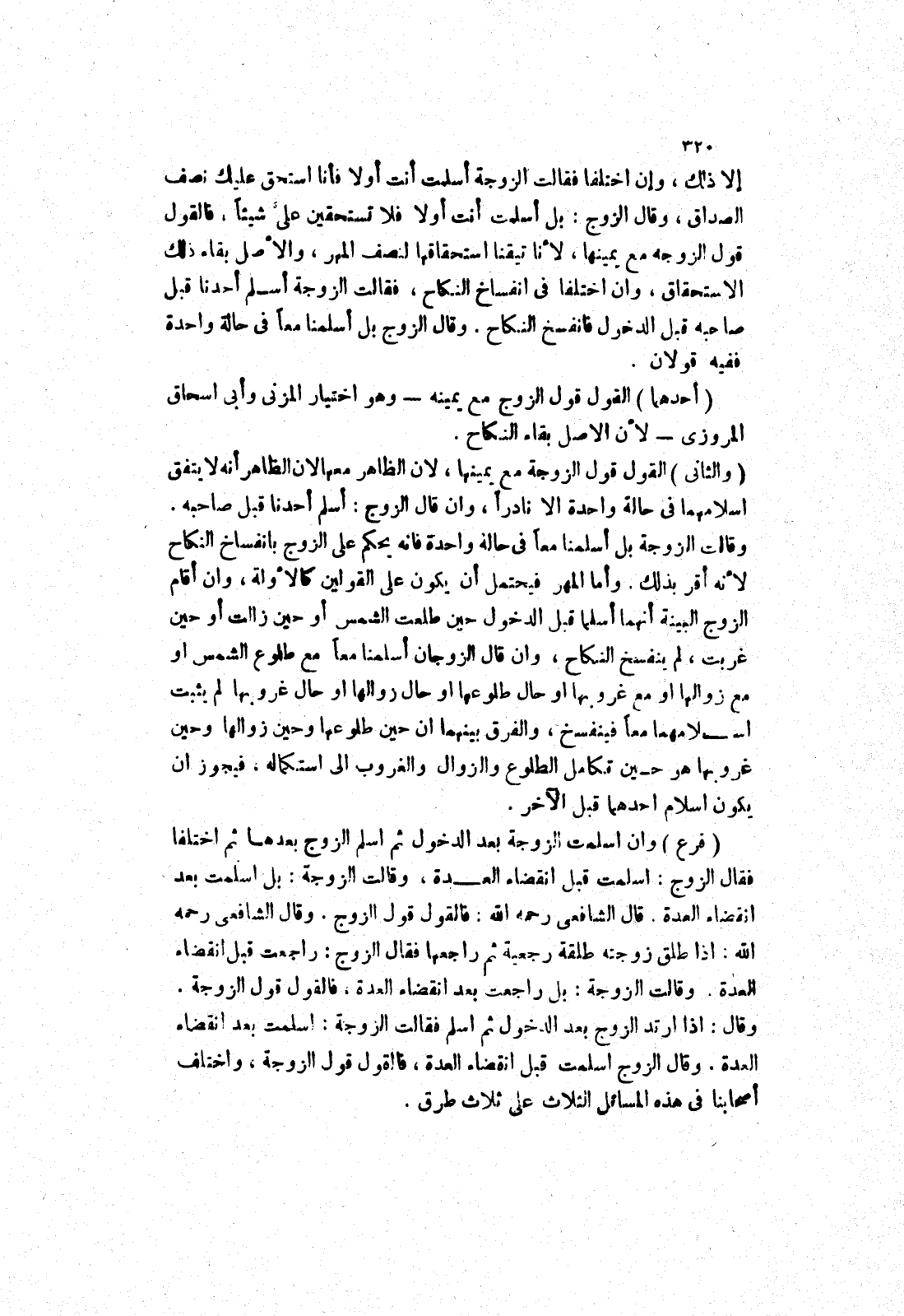إلا ذلك، وإن اختلفا فقالت الزوجة أسلمت أنت أولا فأنا استحق عليك نصف الصداق، وقال الزوج: بل أسلمت أنت أولا فلا تستحقين على شيئا، فالقول قول الزوجه مع يمينها، لانا تيقنا استحقاقها لنصف المهر، والاصل بقاء ذلك الاستحقاق، وان اختلفا في انفساخ النكاح، فقالت الزوجة أسلم أحدنا قبل صاحبه قبل الدخول فانفسخ النكاح.