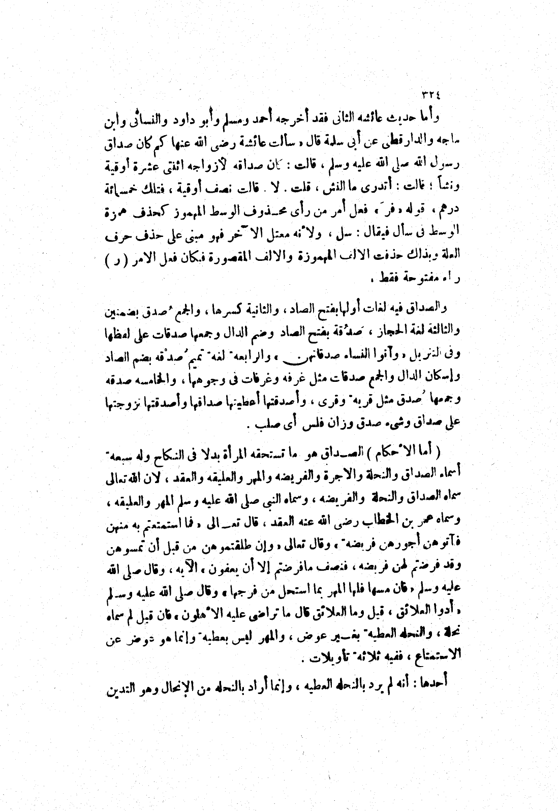 والصداق فيه لغات أولها بفتح الصاد، والثانية كسرها، والجمع صدق بضمتين والثالثة لغة الحجاز، صدقة بفتح الصاد وضم الدال وجمعها صدقات على لفظها وفى التنزيل (وآتوا النساء صدقاتهن) والرابعة لغة تميم صدقه بضم الصاد وإسكان الدال والجمع صدقات مثل غرفه وغرفات في وجوهها، والخامسه صدقه وجمعها صدق مثل قرية وقرى، وأصدقتها أعطيتها صداقها وأصدقتها تزوجتها على صداق وشئ صدق وزان فلس أي صلب.
