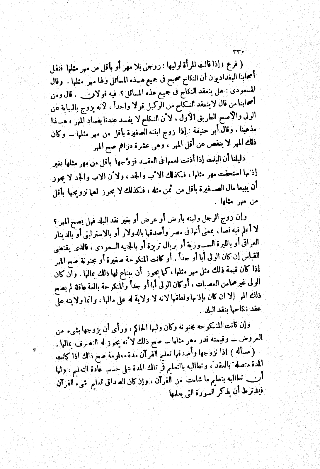 المسعودي: هل ينعقد النكاح في جميع هذه المسائل؟ فيه قولان.
