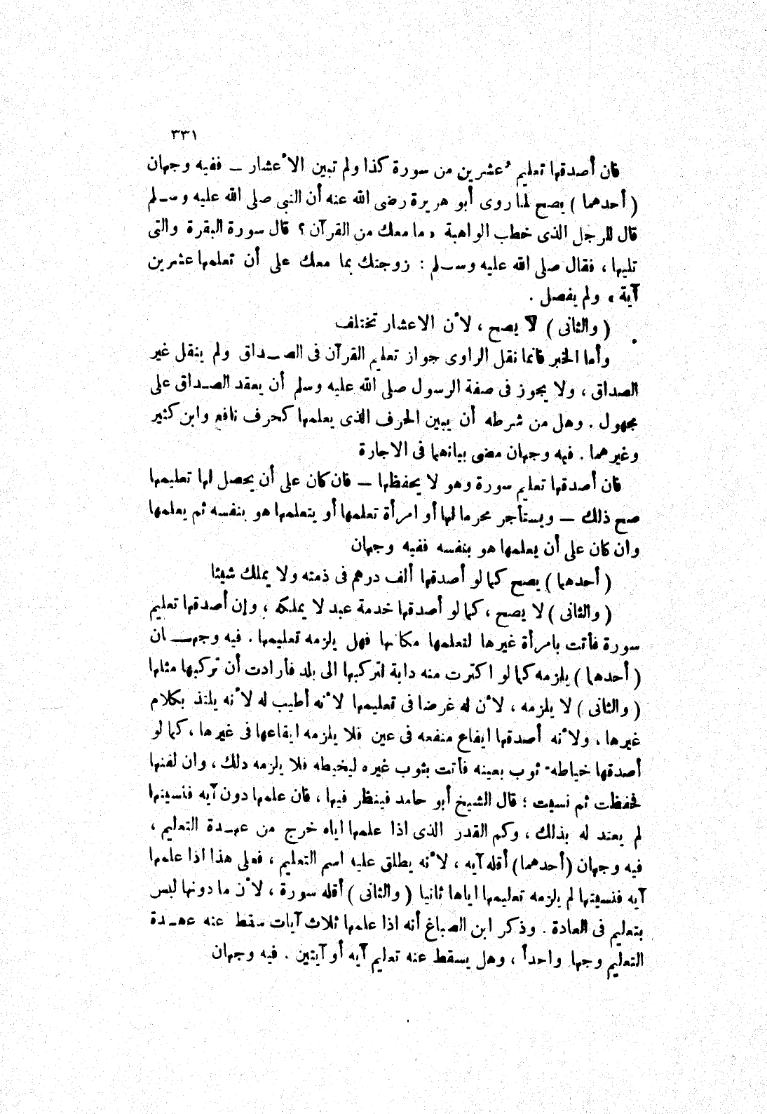 يصح لِمَا رَوَى أَبُو هُرَيْرَةَ رَضِيَ اللَّهُ عَنْهُ إنَّ النَّبِيَّ صَلَّى اللَّهُ عَلَيْهِ وَسَلَّمَ قَالَ للرجل الذى خطب الواهبة (ما معك من القرآن؟ قال سورة البقرة والتى تليها، فقال صلى الله عليه وسلم: زوجتك بما معك على أن تعلمها عشرين آية) ولم يفصل.