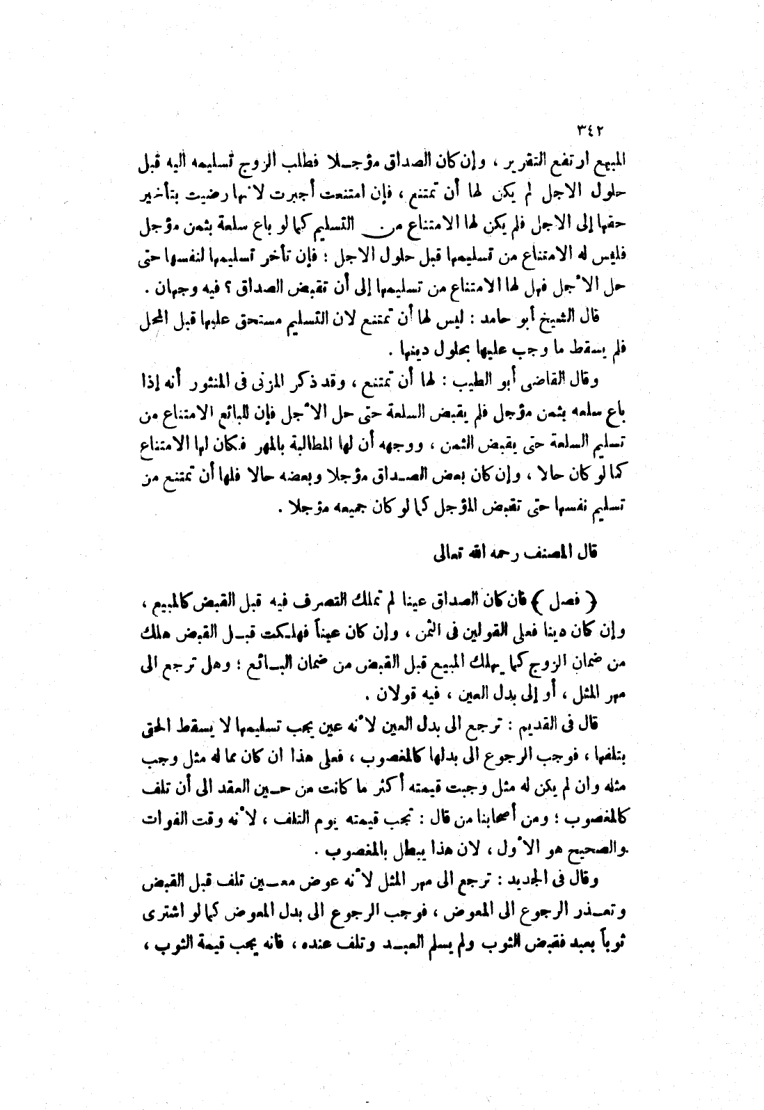 وقال القاضى أبو الطيب: لها أن تمتنع، وقد ذكر المزني في المنثور أنه إذا باع سلعه بثمن مؤجل فلم يقبض السلعة حتى حل الاجل فإن للبائع الامتناع من تسليم السلعة حتى يقبض الثمن، ووجهه أن لها المطالبة بالمهر فكان لها الامتناع كما لو كانت حالا، وإن كان بعض الصداق مؤجلا وبعضه حالا فلها أن تمتنع من تسليم نفسها حتى تقبض المؤجل كما لو كان جميعه مؤجلا.