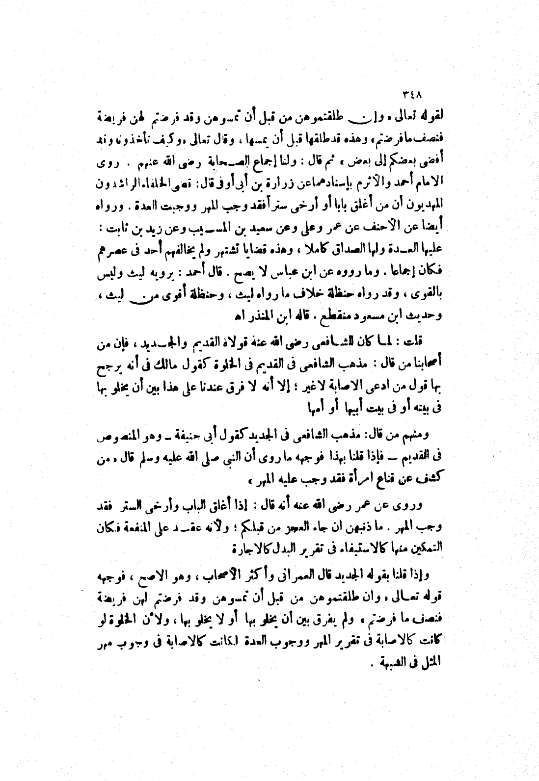 ومنهم من قال: مذهب الشافعي في الجديد كقول أبى حنيفة وهو المنصوص في القديم فإذا قلنا بهذا فوجهه مَا رُوِيَ أَنَّ النَّبِيَّ صَلَّى اللَّهُ عَلَيْهِ وَسَلَّمَ قَالَ (من كشف عن قناع امرأة فقد وجب عليه المهر) وروى عَنْ عُمَرَ رَضِيَ اللَّهُ عَنْهُ أَنَّهُ قَالَ: إذا أغلق الباب وأرخى الستر فقد وجب المهر.