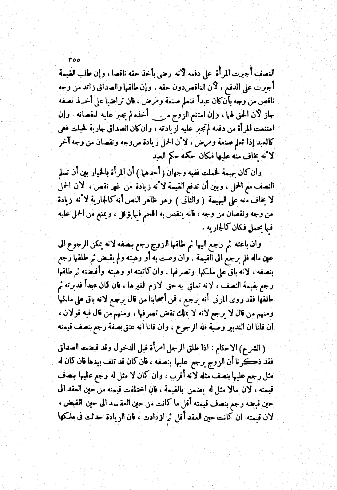 وان كاتبته أو وهبته وأقبضته ثم طلقها رجع بقيمة النصف، لانه تعلق به حق لازم لغيرها، فان كان عبدا فدبرته ثم طلقها فقد روى المزني أنه يرجع، فمن أصحابنا من قال يرجع لانه باق على ملكها ومنهم من قال لا يرجع لانه لا يملك نقض تصرفها، ومنهم من قال فيه قولان، ان قلنا ان التدبير وصية فله الرجوع، وان قلنا انه عتق بصفة رجع بنصف قيمته (الشرح) الاحكام: إذا طلق الرجل امرأة قبل الدخول وقد قبضت الصداق فقد ذكرنا أن الزوج يرجع عليها بنصفه، فان كان قد تلف بيدها فان كان له مثل رجع عليها بنصف مثله لانه أقرب، وان كان لا مثل له رجع عليها بنصف قيمته، لان ما لا مثل له يضمن بالقيمة، فان اختلفت قيمته من حين العقد إلى حين قبضه رجع بنصف قيمته أقل ما كانت من حين العقد إلى حين القبض، لان قيمته ان كانت حين العقد أقل ثم ازدادت، فان الزيادة حدثت في ملكها