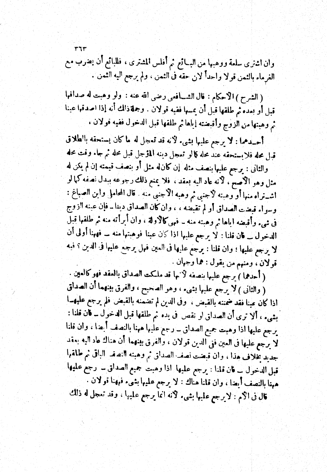(الشرح) الاحكام: قال الشافعي رضى الله عنه: ولو وهبت له صداقها قبل أو بعده ثم طلقها قبل أن يمسها ففيه قولان.