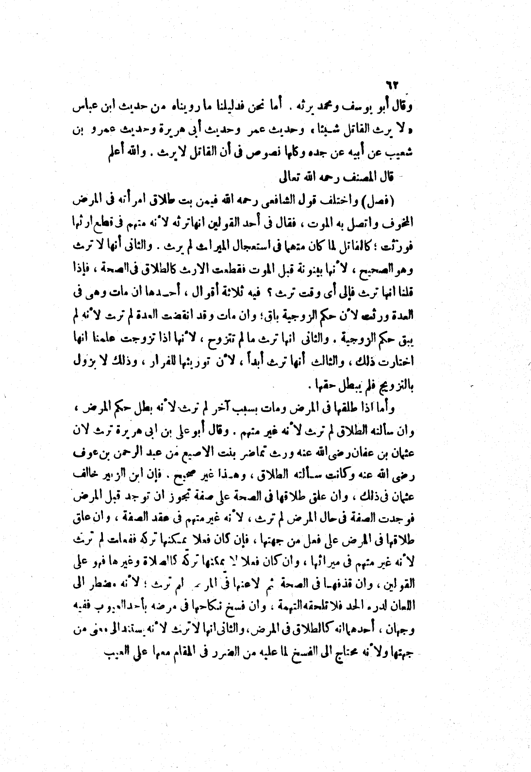 واختلف قول الشافعي رحمه الله فيمن بت طلاق امرأته في المرض المخوف واتصل به الموت، فقال في أحد القولين انها ترثه لانه متهم في قطع ارثها فورثت، كالقاتل لما كانت متهما في استعجال الميراث لم يرث.