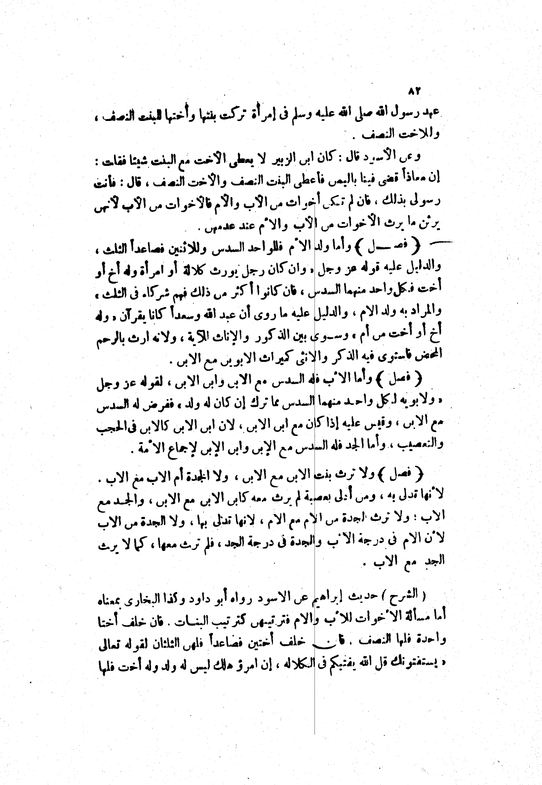 (الشرح) حديث إبراهيم عن الاسود رواه أبو داود وكذا البخاري بمعناه أما مسألة الاخوات للاب والام فترتيبهن كترتيب البنات.