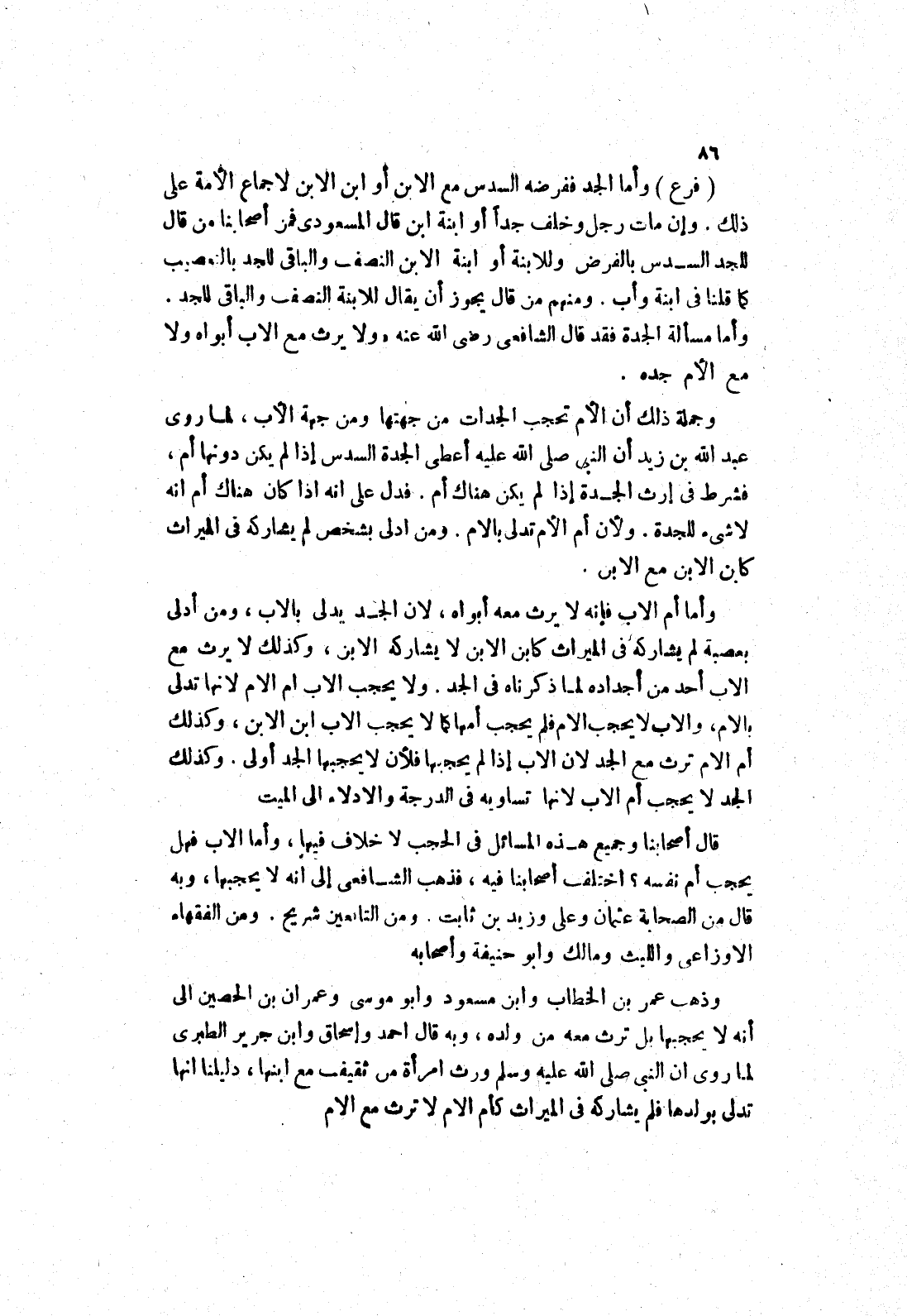 وأما الجد ففرضه السدس مع الابن أو ابن الابن لاجماع الامة على ذلك.