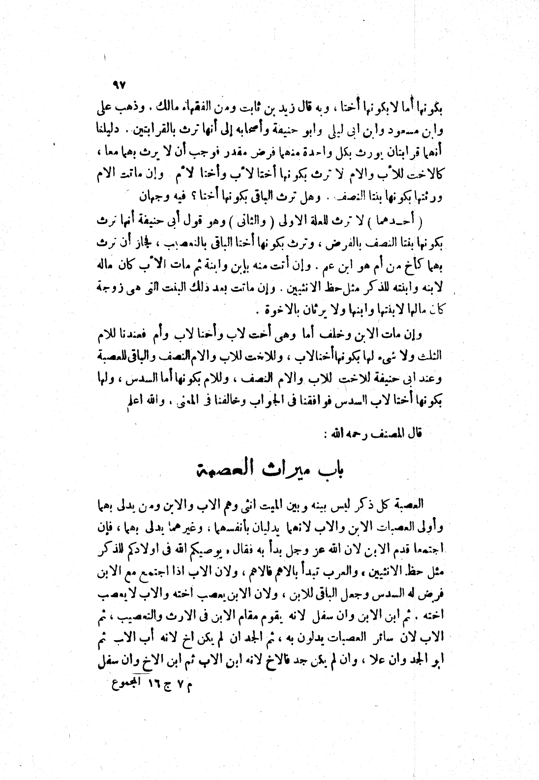 باب ميراث العصبة