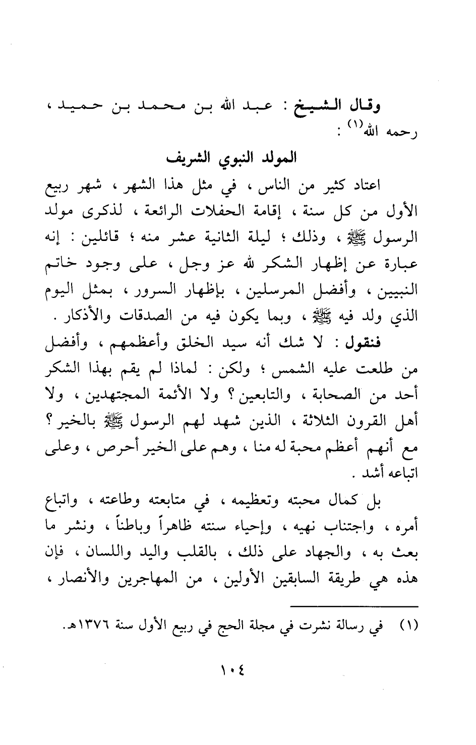 1 في رسالة نشرت في مجلة الحج في ربيع الأول سنة 1376 هـ.